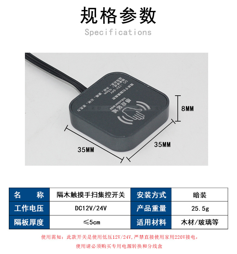 12V 24V 隐藏式隔板触摸感应开关橱衣柜灯带分控隔木触摸感应开关
