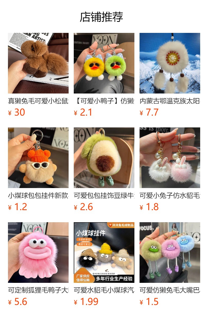 クロスボーダーのウサギの毛の小さい石炭のボールの自動車のキーホルダーの掛け金のぬいぐるみのかばんの包みは贈り物の漫画の人形の潮がクールです。