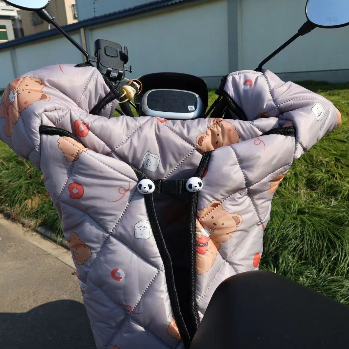 新款电动车小熊扣挡风被固定插扣可拆卸调节挡风被收纳四季防雨淋