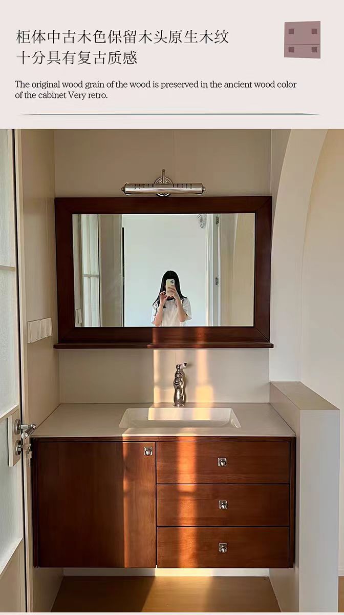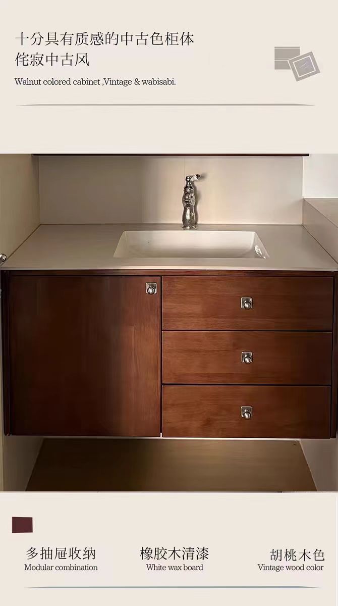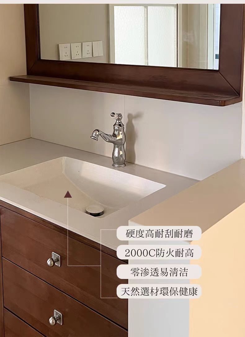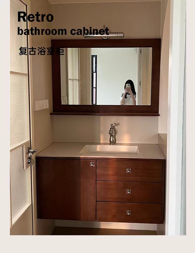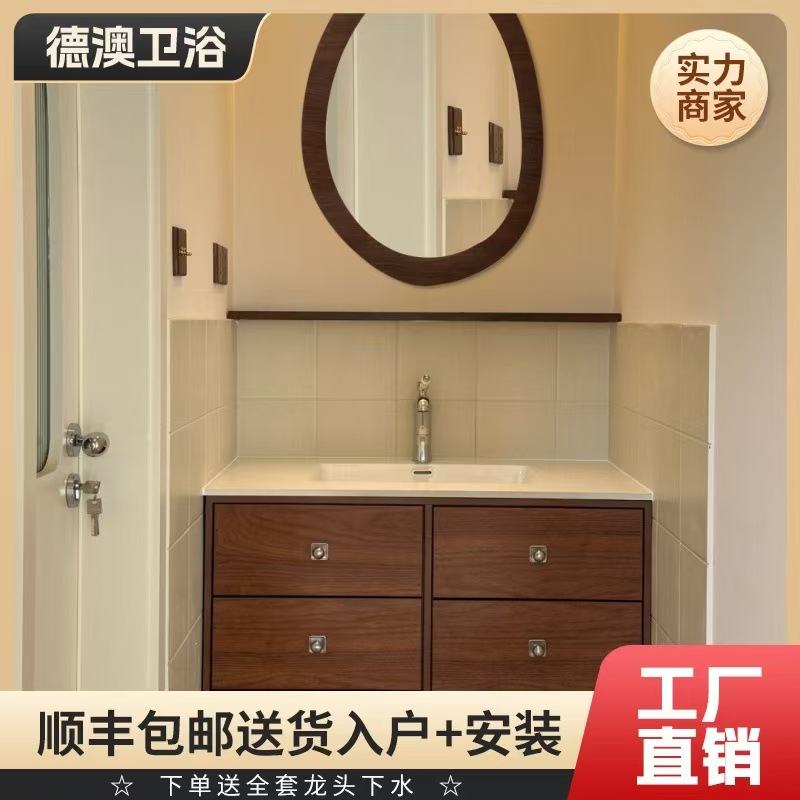 紅書網紅中古風胡桃色浴室キャビネットセット洗面台岩板陶磁器一体型洗面台洗面台