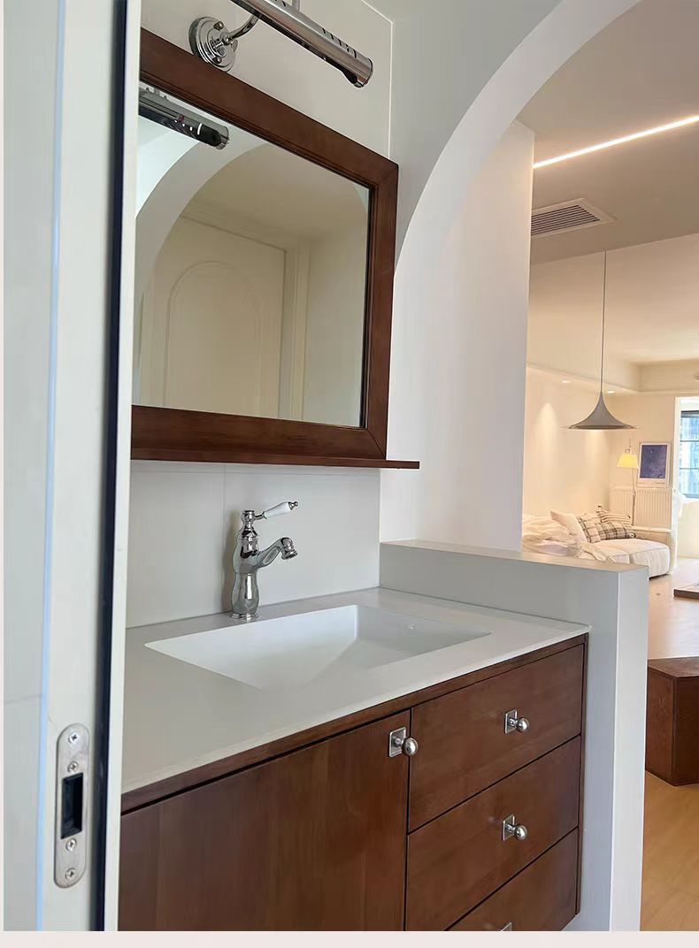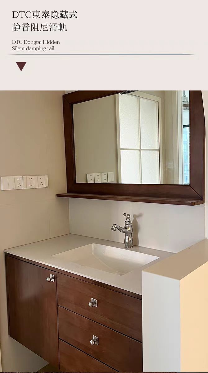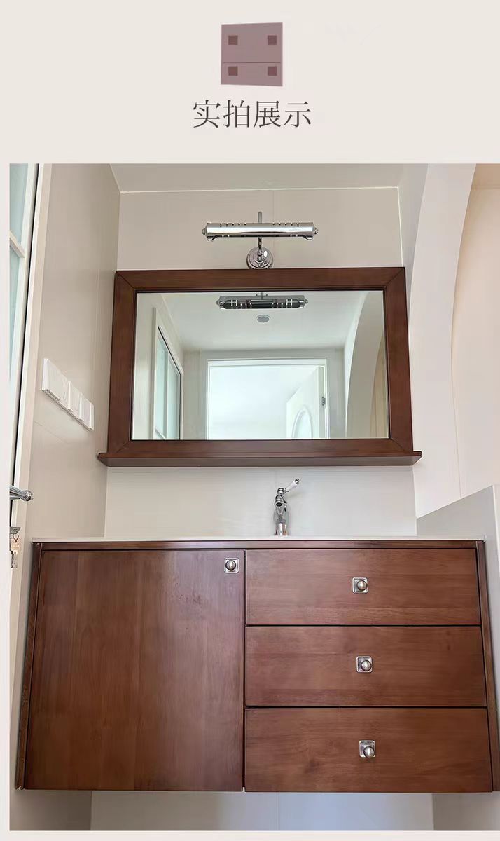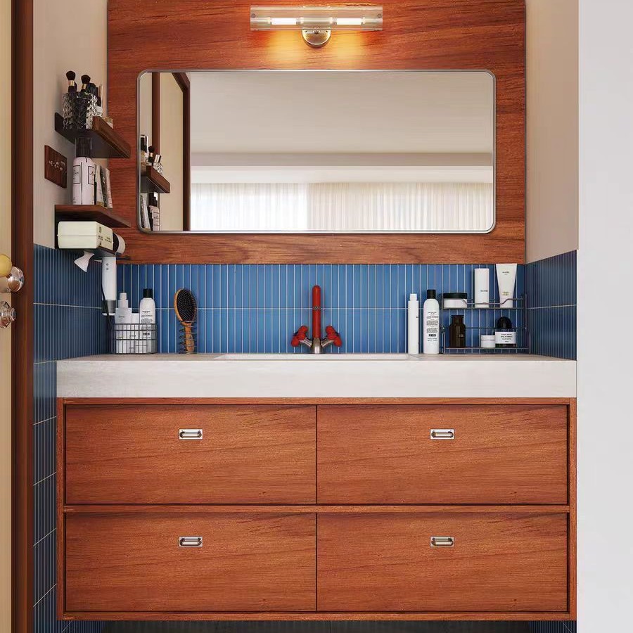 紅書網紅中古風胡桃色浴室キャビネットセット洗面台岩板陶磁器一体型洗面台洗面台