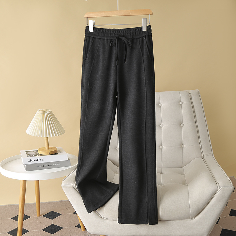 2024秋の大きいサイズのバナナのズボンの女性のズボンの高腰のズボンのファッション的な太っている妹の側はフォークの曲がった刀のズボンを開けてやせている大衆の9240を現します。