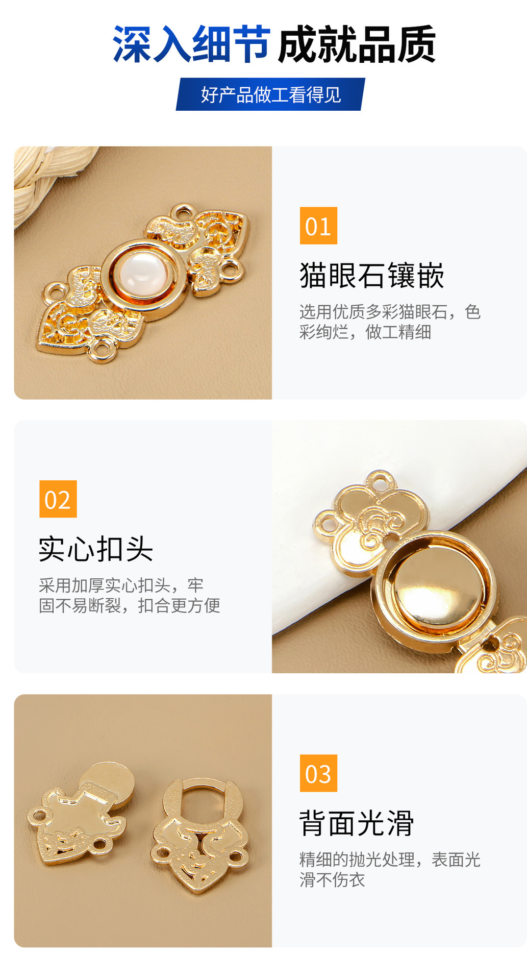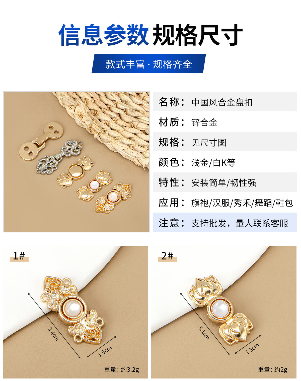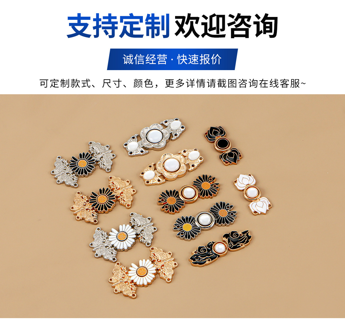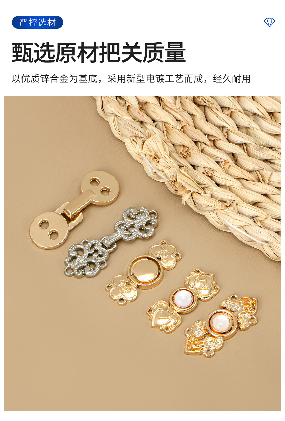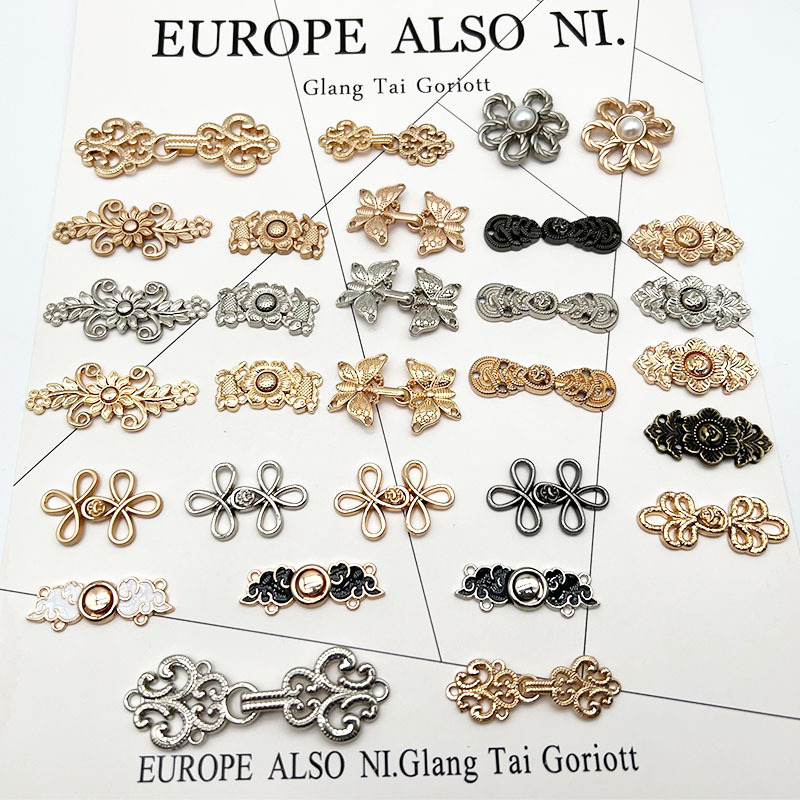 明製漢服ボタン、メタル風紀ボタン、ダブルフックボタン、ウーフライボタン、チャイナドレスフックボタン、ウエストボタン、ボタンを直接供給