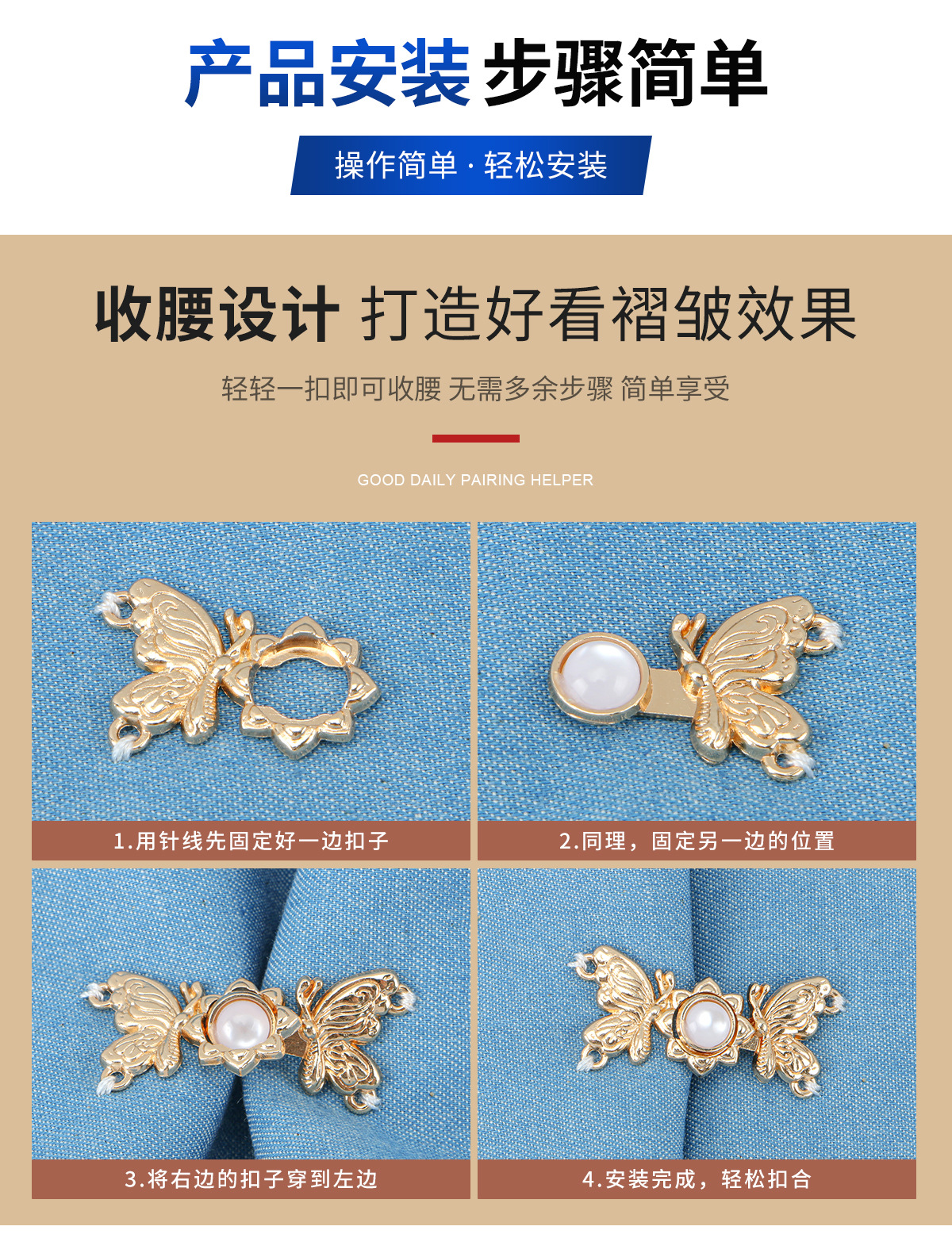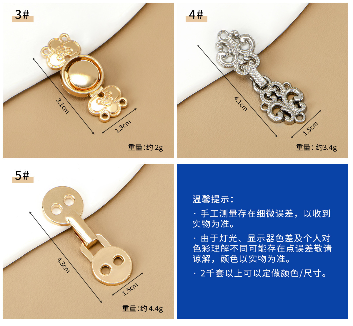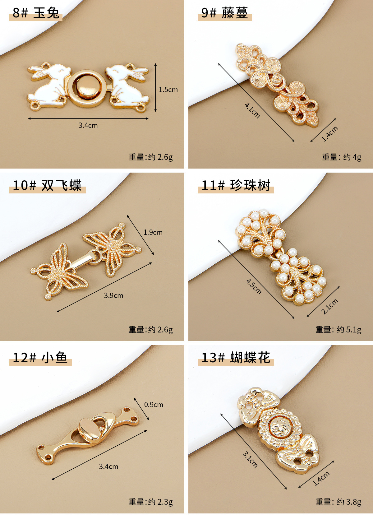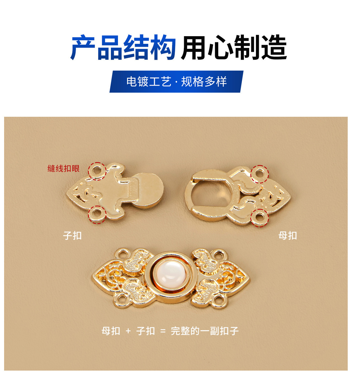 明製漢服ボタン、メタル風紀ボタン、ダブルフックボタン、ウーフライボタン、チャイナドレスフックボタン、ウエストボタン、ボタンを直接供給
