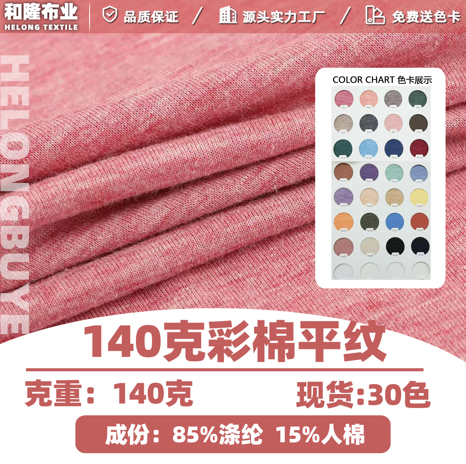 140グラムカラー綿平織りニット生地TR片面汗布人綿混紡七彩綿ニット生地tシャツ汗布