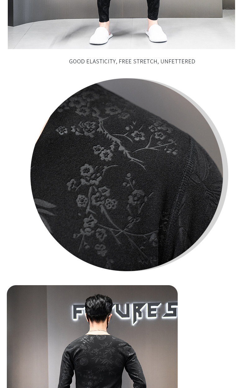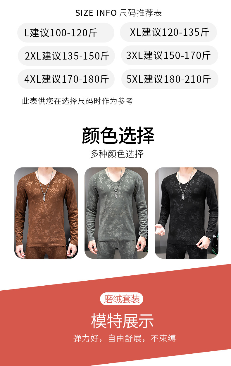 秋冬男性無痕保温セット加毛修身7a抗菌vネック弾力プリント毛秋衣秋ズボン