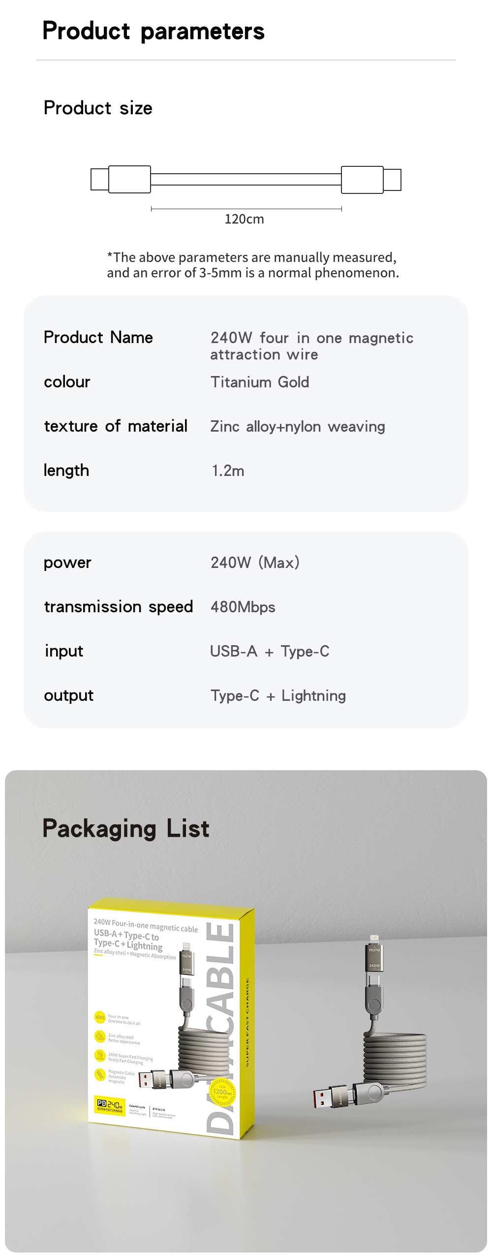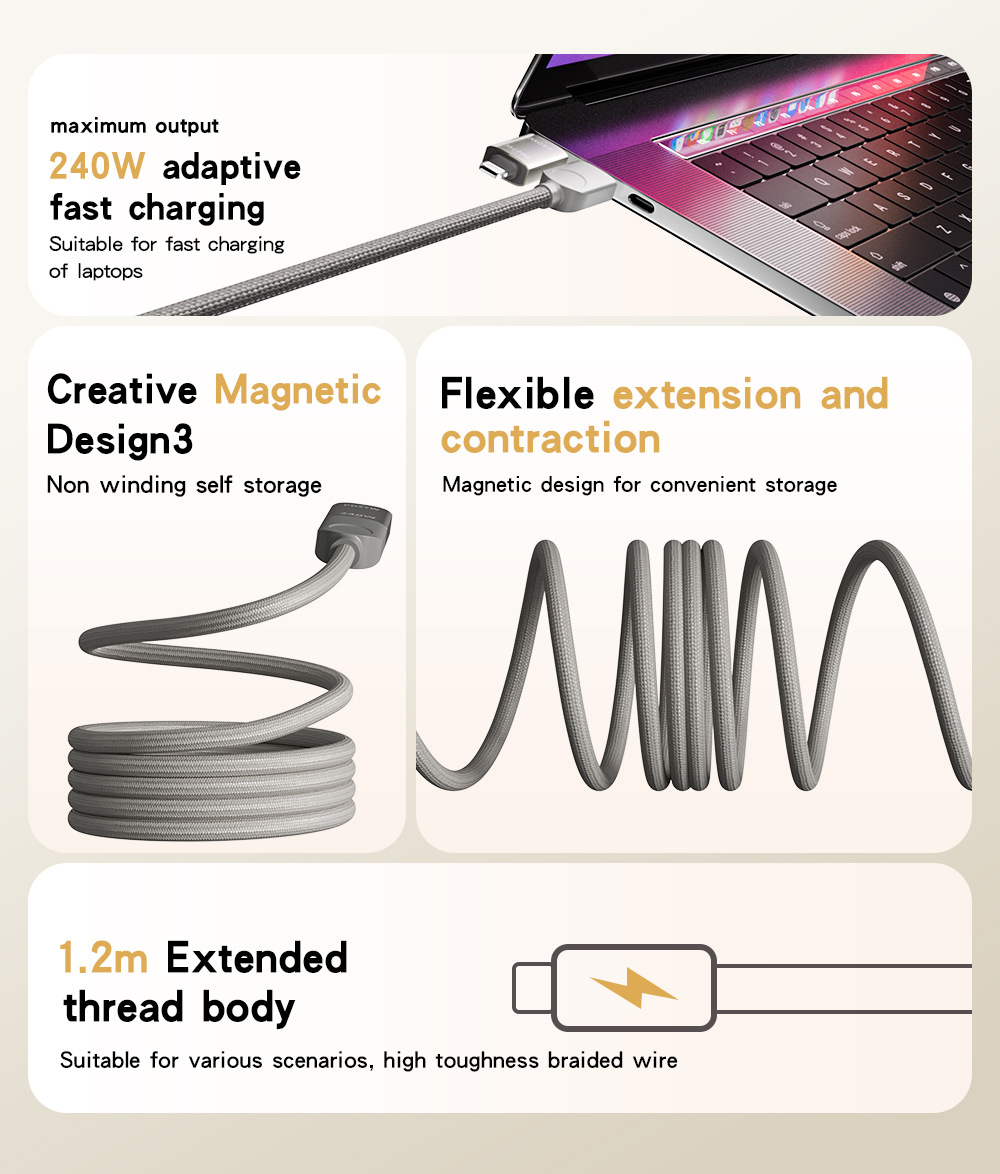 【越境人気商品】Bei Mo 240w 磁気ストレージ フォーインワン高速充電ケーブル Apple iPhone 16 Huawei に適しています