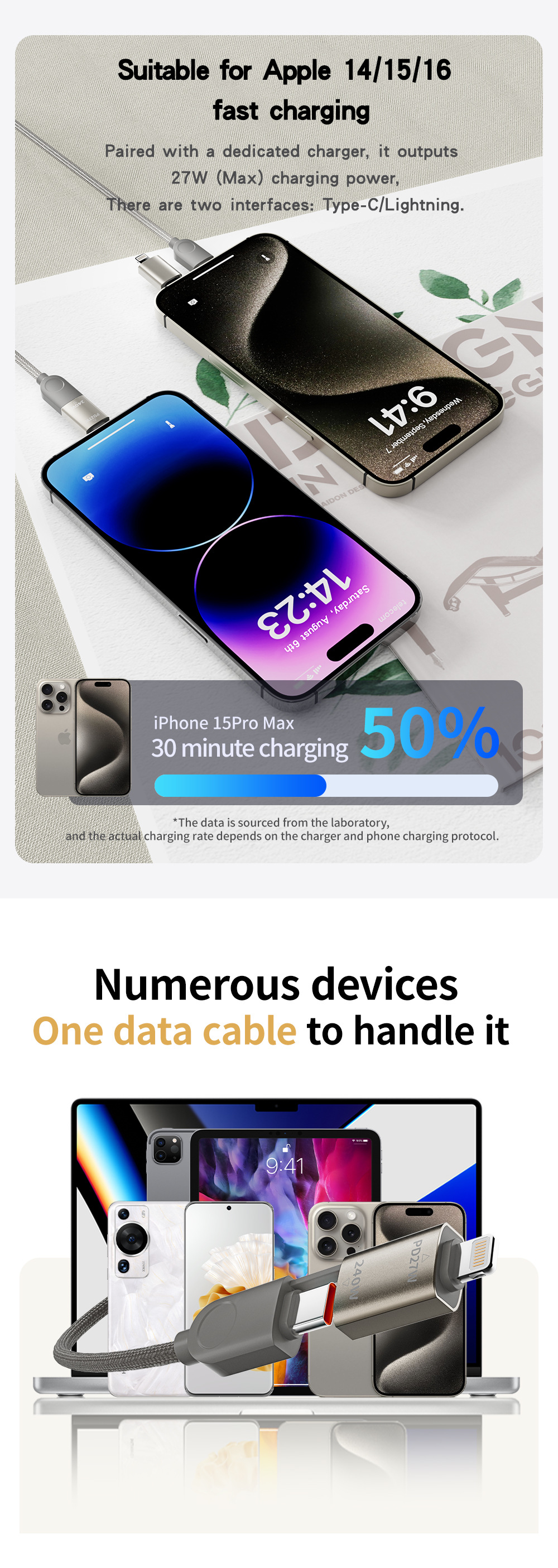 【安全で長持ちする】倍魔磁気吸引ケーブル240Wは華為PD快充リンゴ16編快充線を適用する