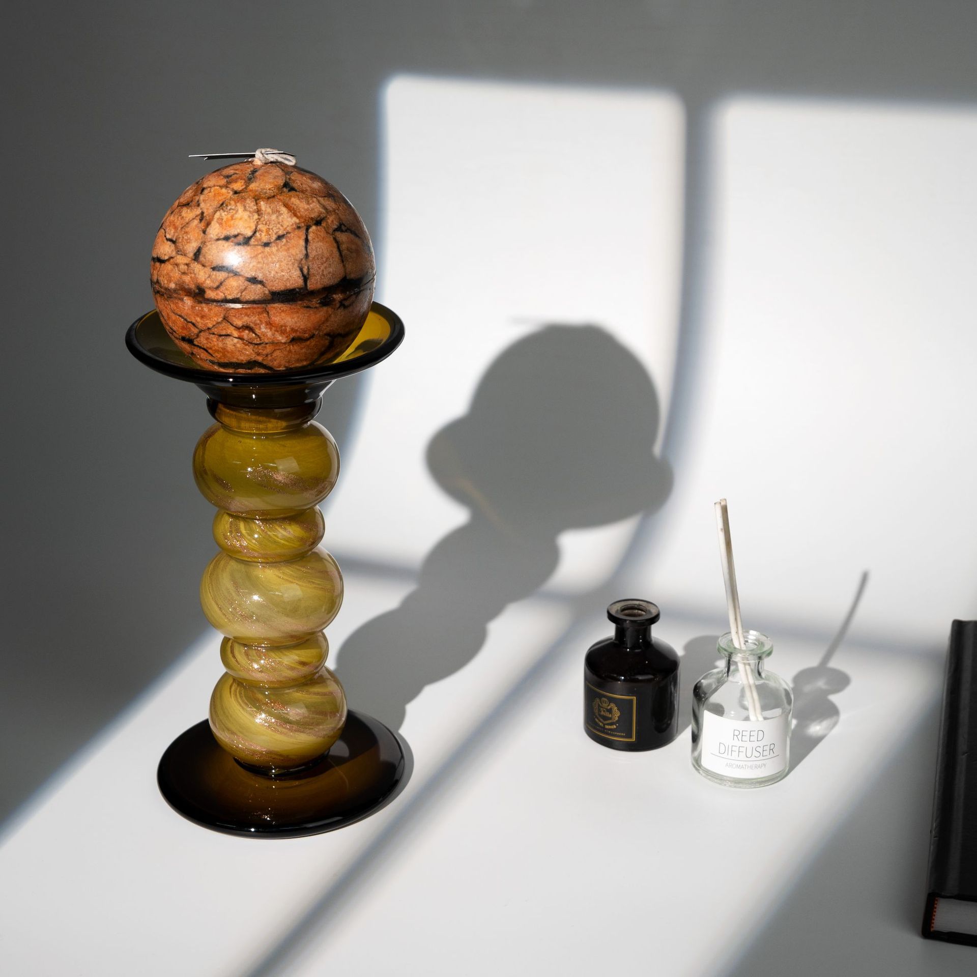絶美中古燭台重工瑠璃茶色筋理復古小衆芸術雰囲気感置物ろうそく托クリスマス