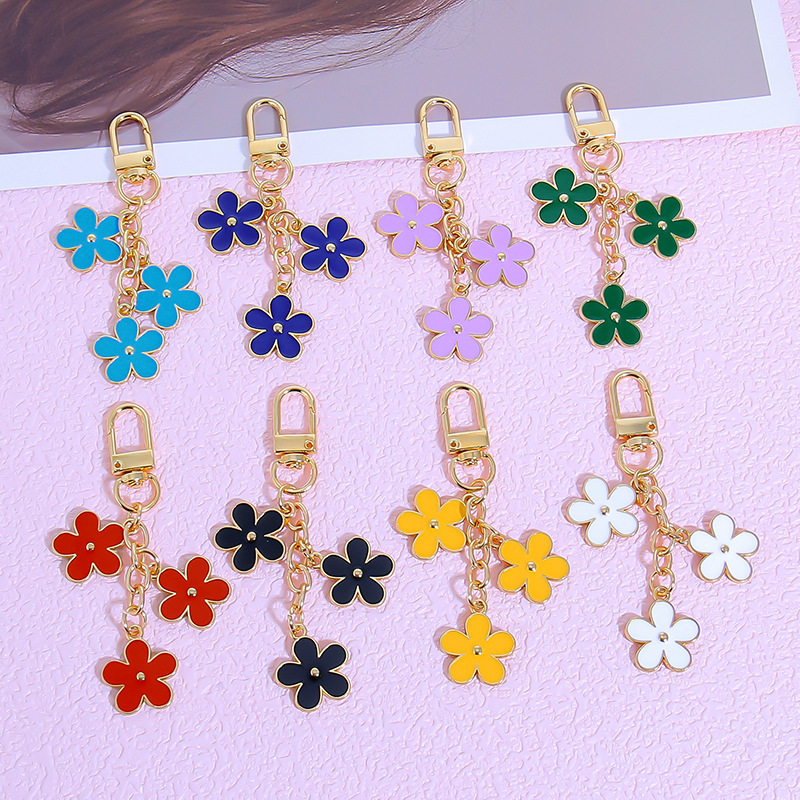 オリジナルのかわいい女の子風フラワーキーホルダー、亜鉛合金製、油滴加工で色褪せ防止、キーチェーンペンダント、繊細なベル付き
