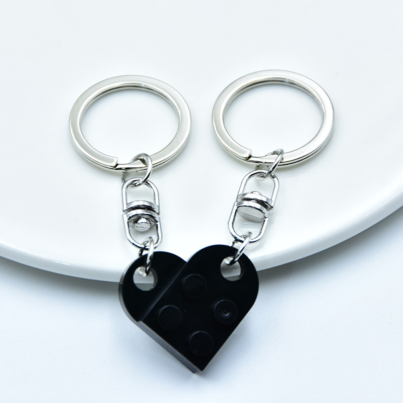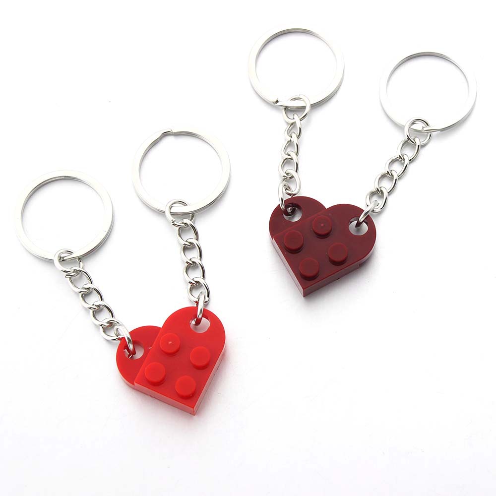 合二为一爱心积木情人节钥匙圈可拆分情侣钥匙扣友情亲情心形钥匙