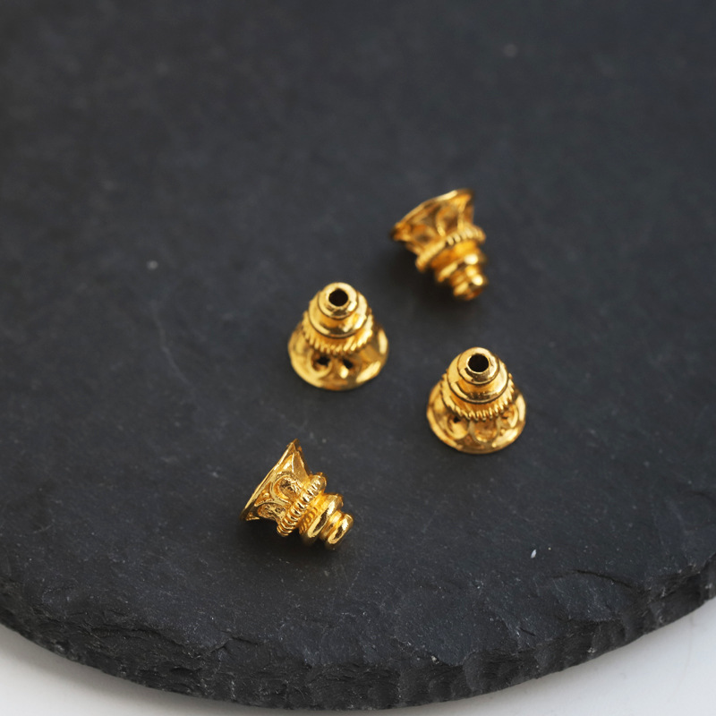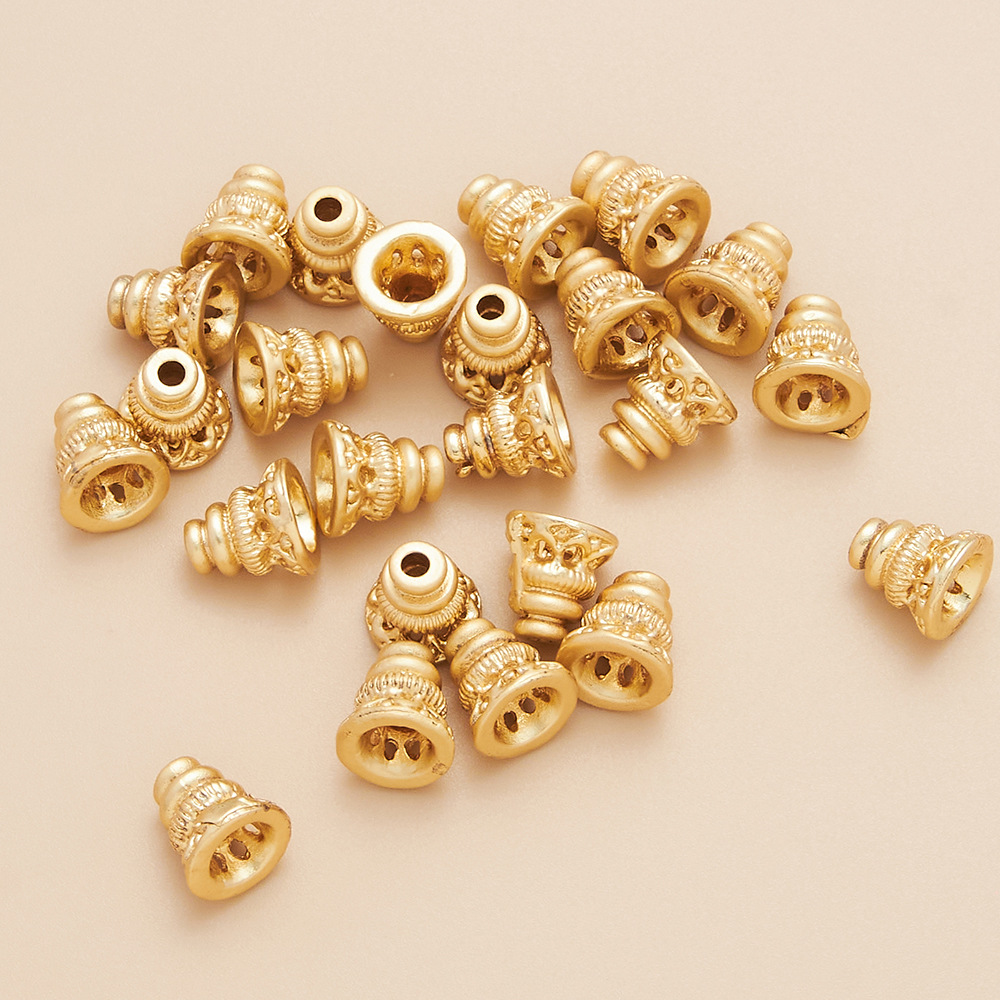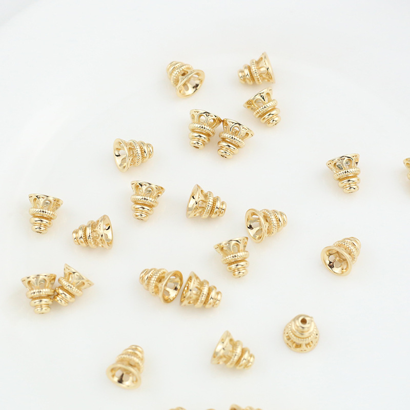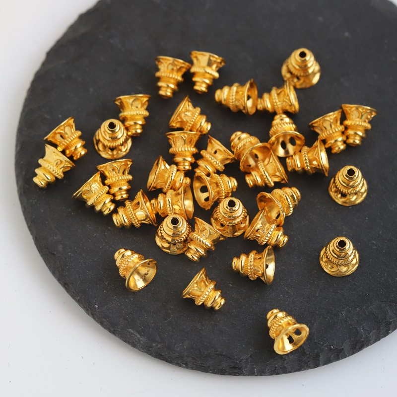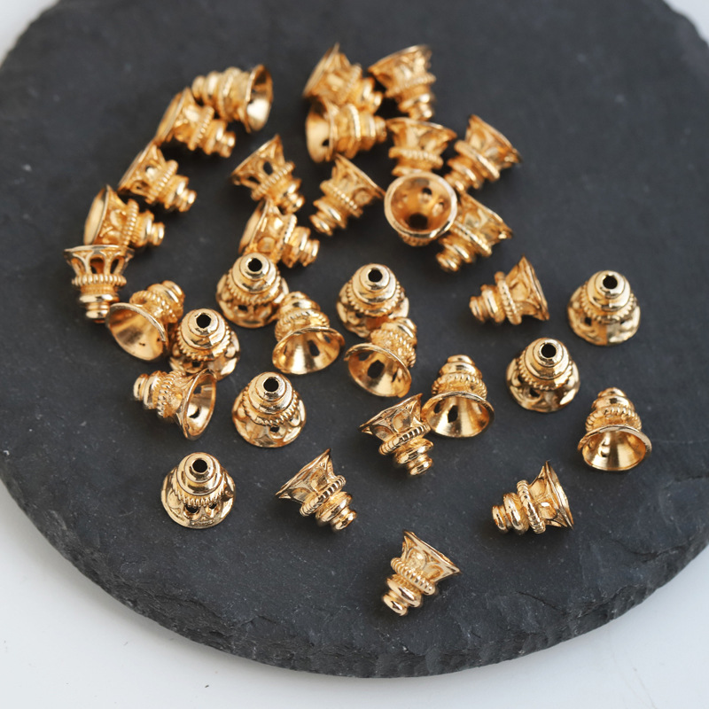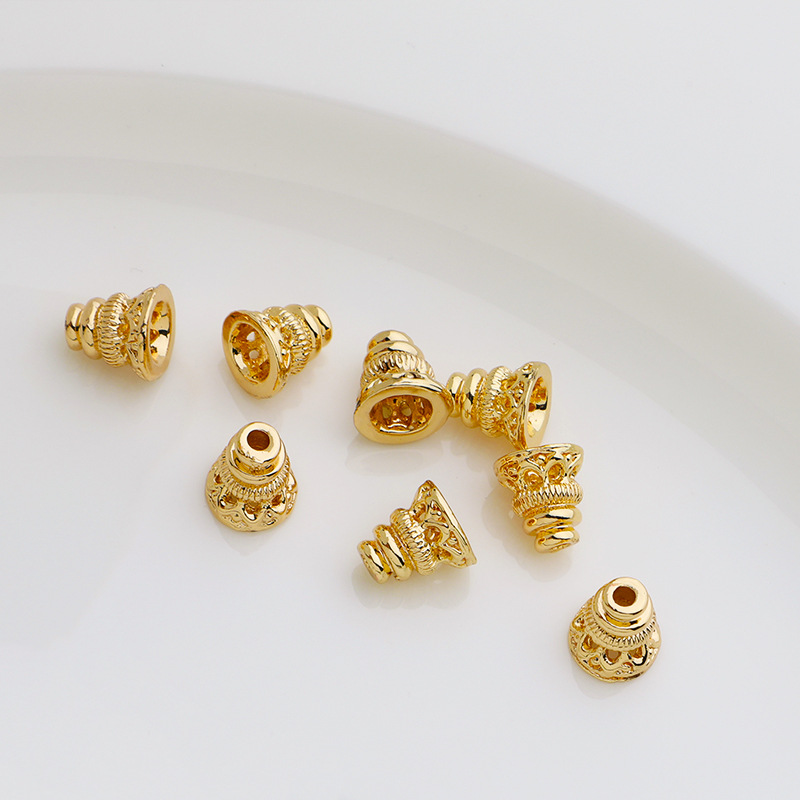 銅メッキ14k古法金強保色透かし彫り仏塔花帽ラッパ大穴桶珠ビーズビーズアクセサリー部品
