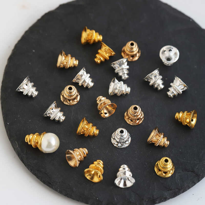 20個の価格保色合金7mmトランペット塔帽花托震え枝diy古風ヘアピン歩行材料