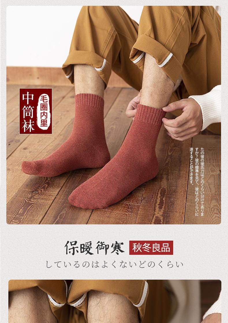 冬季袜子男款中筒袜长袜加厚毛圈袜子加绒保暖袜防臭批发秋冬吸汗