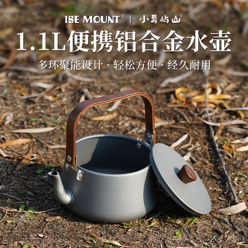 ISE MOUNTアウトドアアルミ合金ケトル大容量ティーポットキャンプ調理器具ポータブル1.1L木柄コーヒーポット
