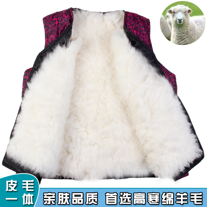 メーカー卸売り秋冬中老羊皮馬甲毛皮一体は保温男性ウール馬を厚くする