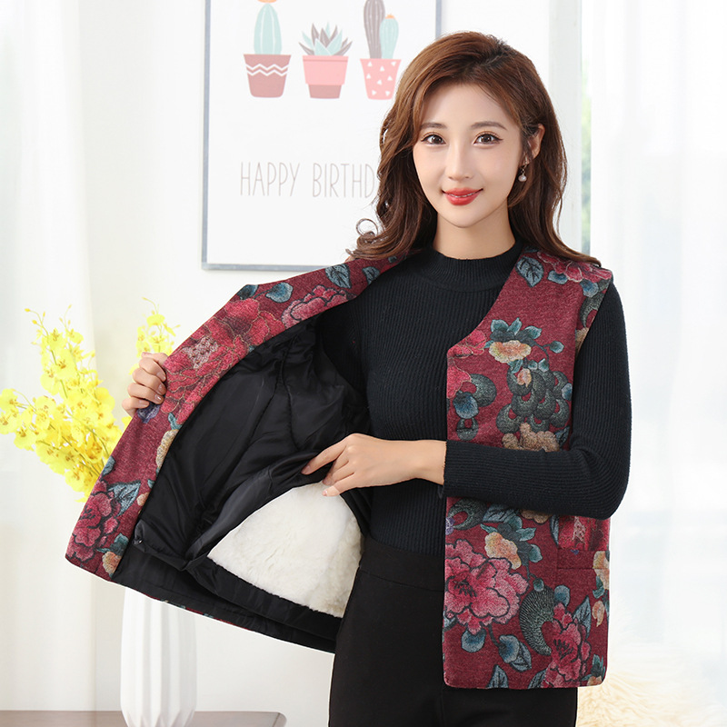 秋冬の皮ベストの中で高齢者のウールの馬甲の毛皮の一体の女性の馬は厚い保温の肩のお母さんの服を挟みます。