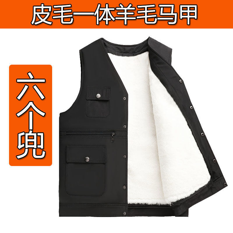 卸売り冬の中高年毛皮一体ウール馬甲は保温男性ウール馬甲を厚くする