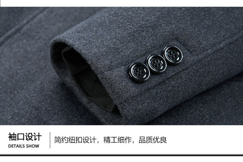 新しいミドル丈のウールコート、男性用冬用、お父さん用、ビジネスカジュアル、ベルベットウールウインドブレーカージャケット