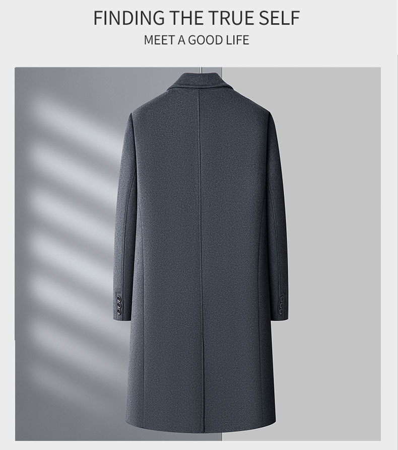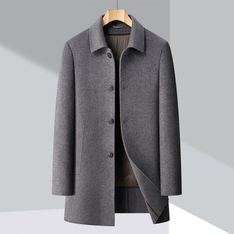 高級中高年男性用ウールコート、両面フリースウール混紡ジャケット、ミドル丈、お父さん向け、秋冬ウールコート