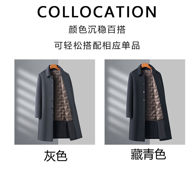 【】羊毛双面呢大衣男可拆卸羽绒内胆翻领呢子外套可拆卸羽绒内胆