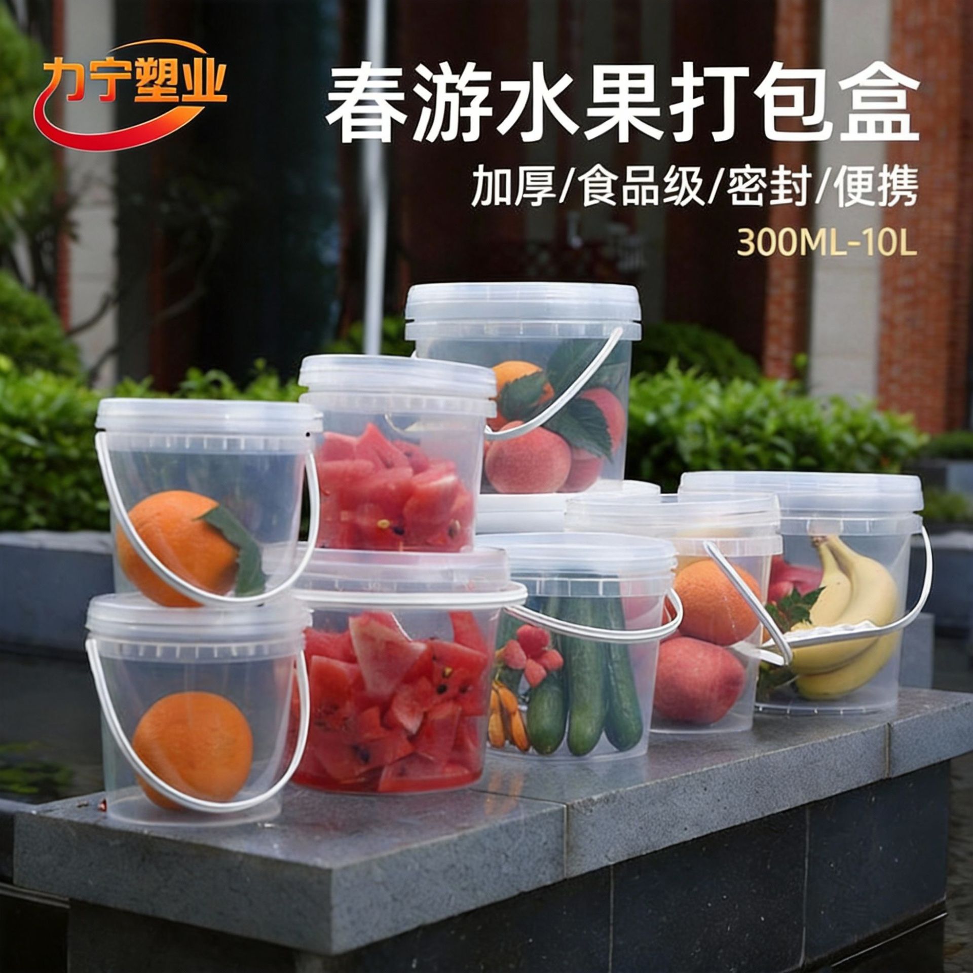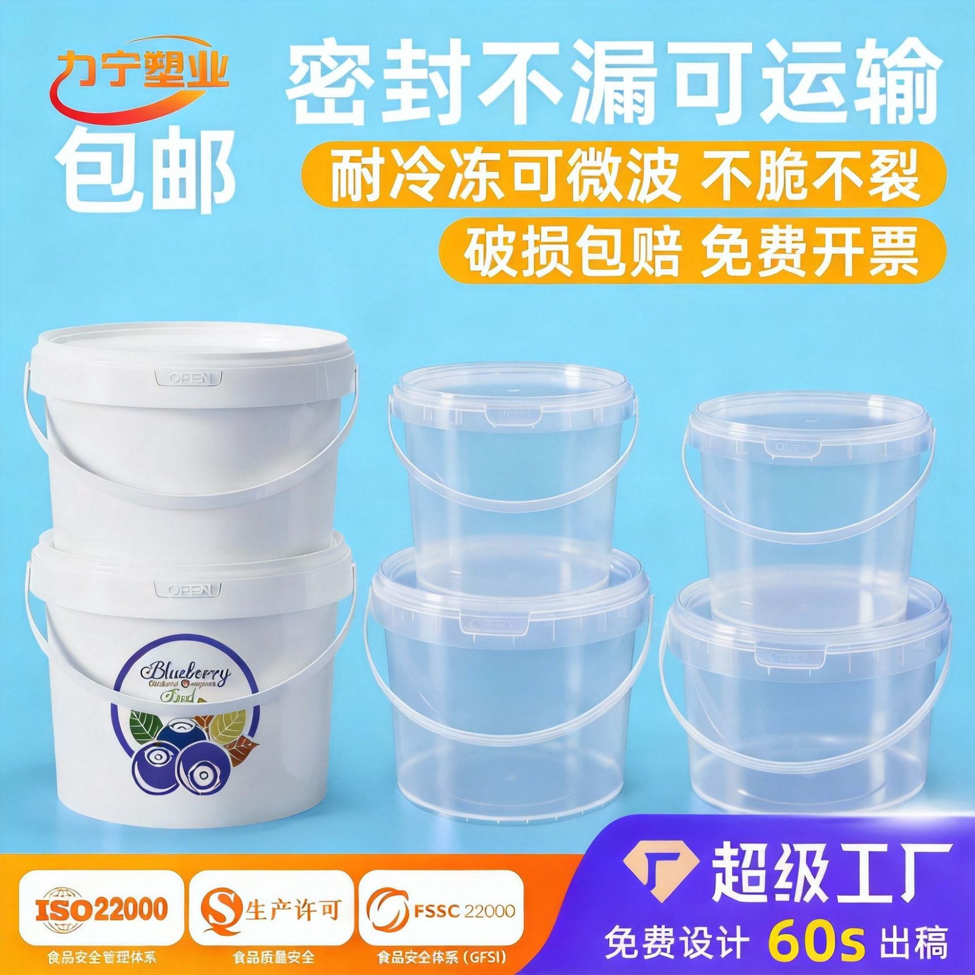 密封包装バケツ 食品グレードPP4L ホワイト透明プラスチックバケツ フルーツバケツ 持ち手付き蓋付き丸型バケツ 750ml