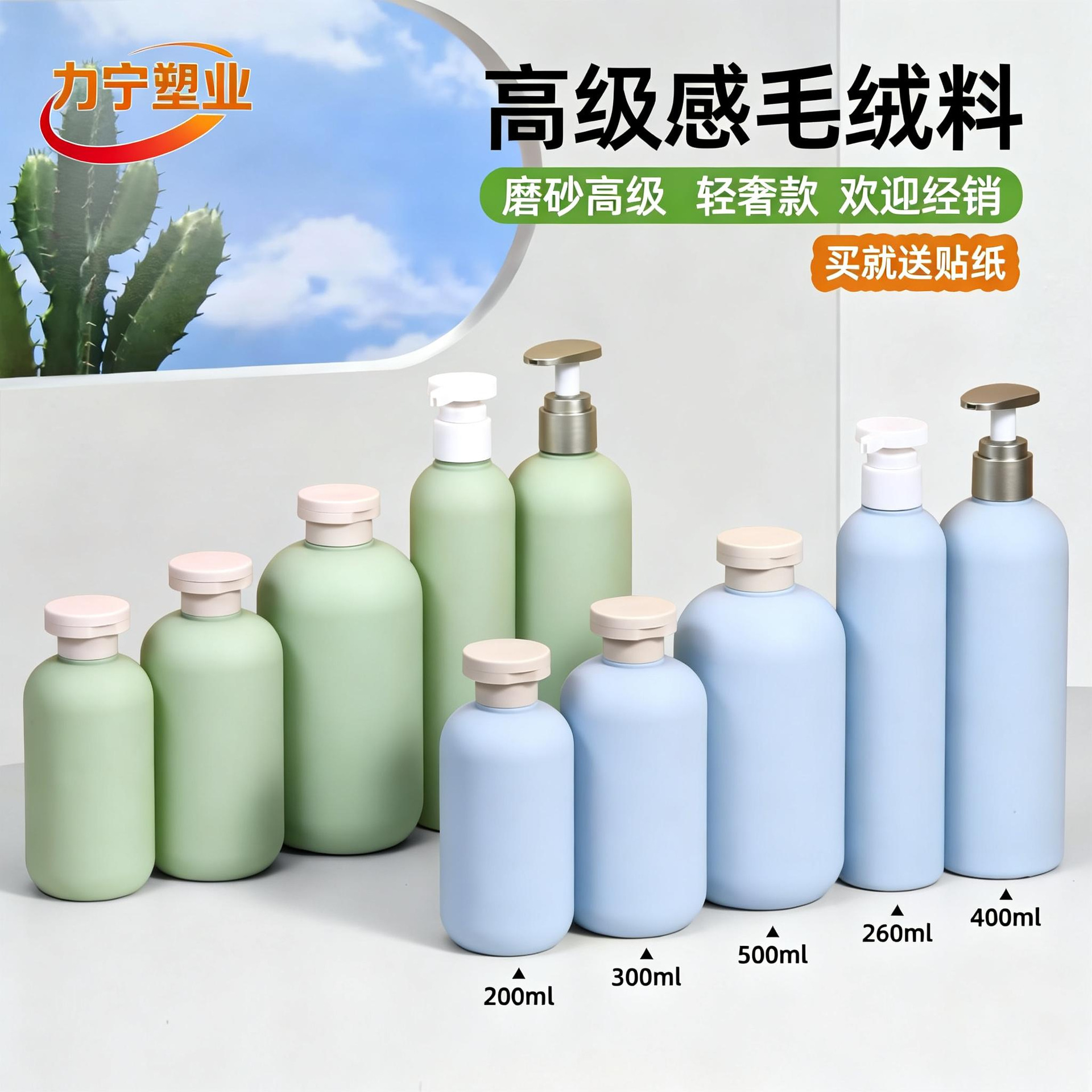 力宁PE毛绒软料牛油果绿分装瓶沐浴露乳液瓶旅行空压泵瓶洗护瓶
