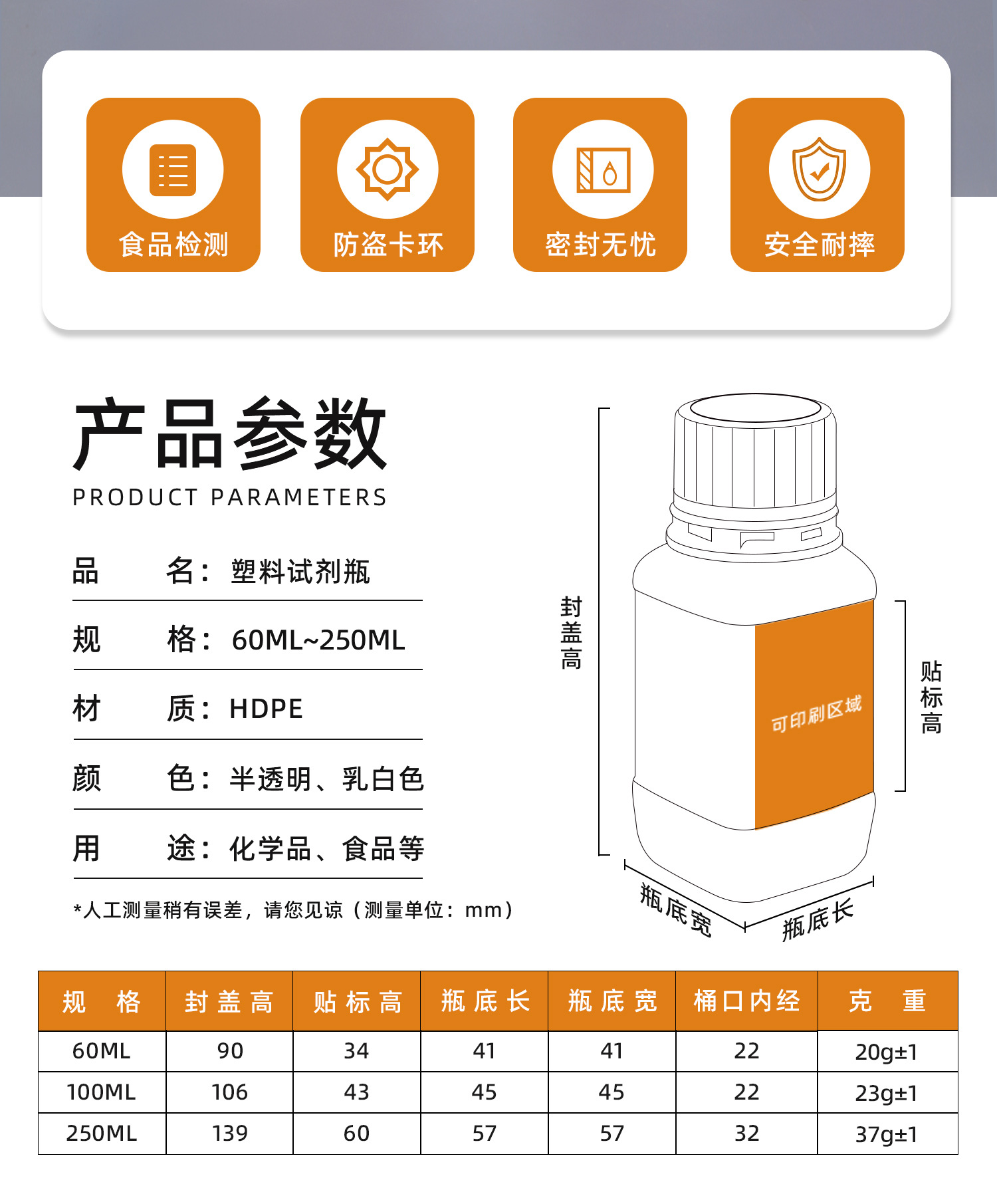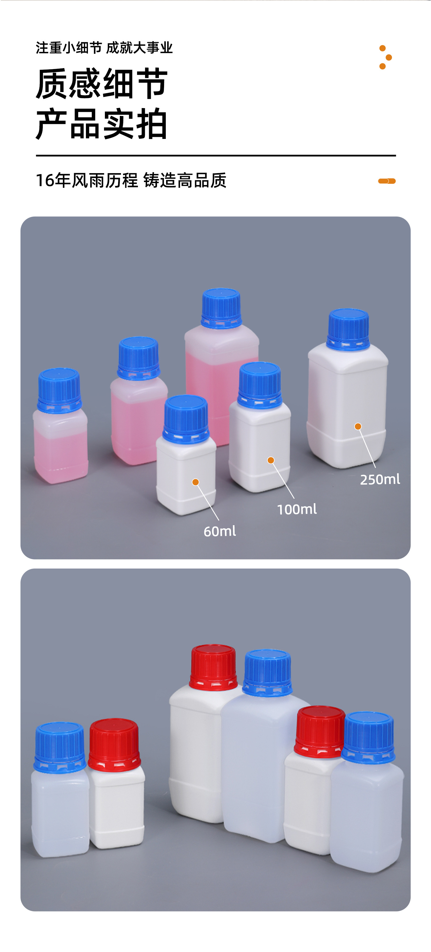 力宁100-500ml防漏化学试剂瓶香精墨水定制超密封HDPE方形塑料瓶