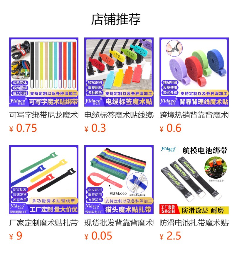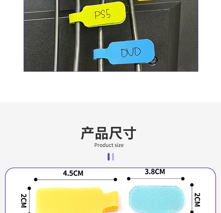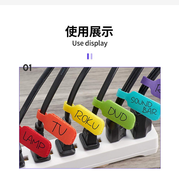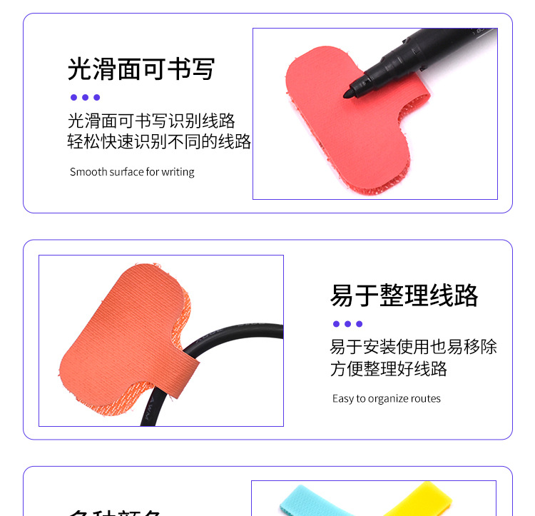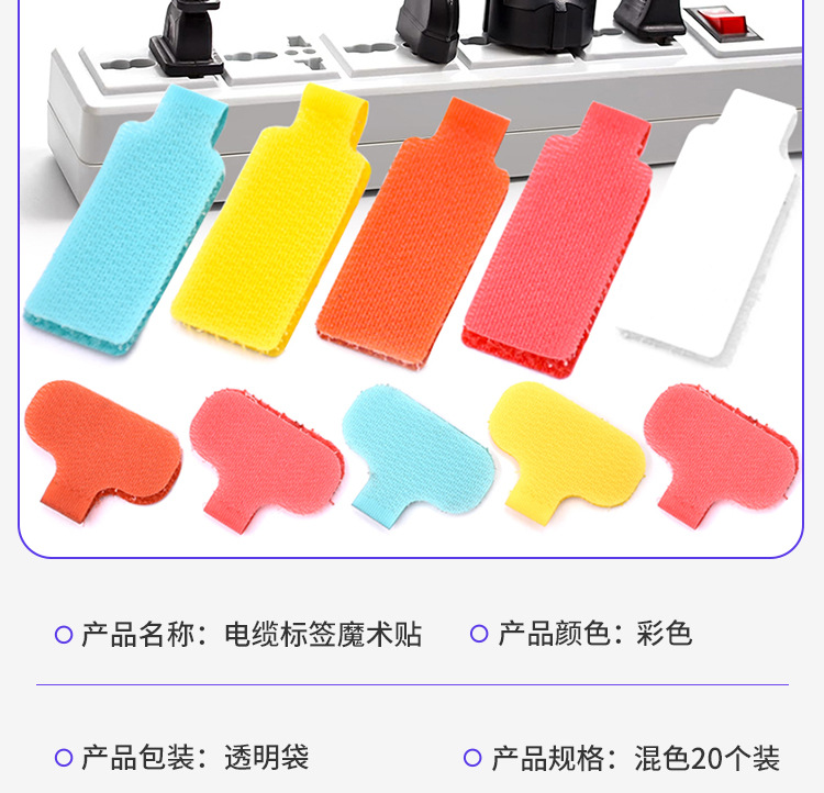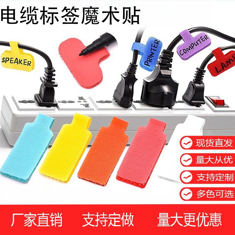 跨境热卖可写字标签自粘分类彩色魔术贴识别管理分类电缆电线绑带