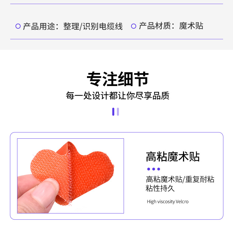 电缆电线标签数据线充电线分类整理专用魔术贴彩色可选防水可写字