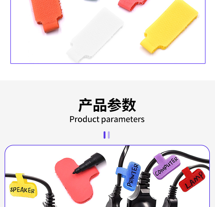新款跨境热销数据线标签魔术贴尼龙可书写写字彩色电缆标签魔术贴