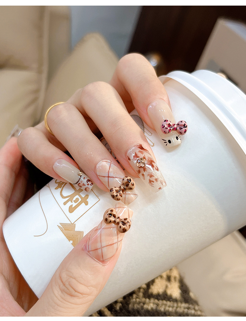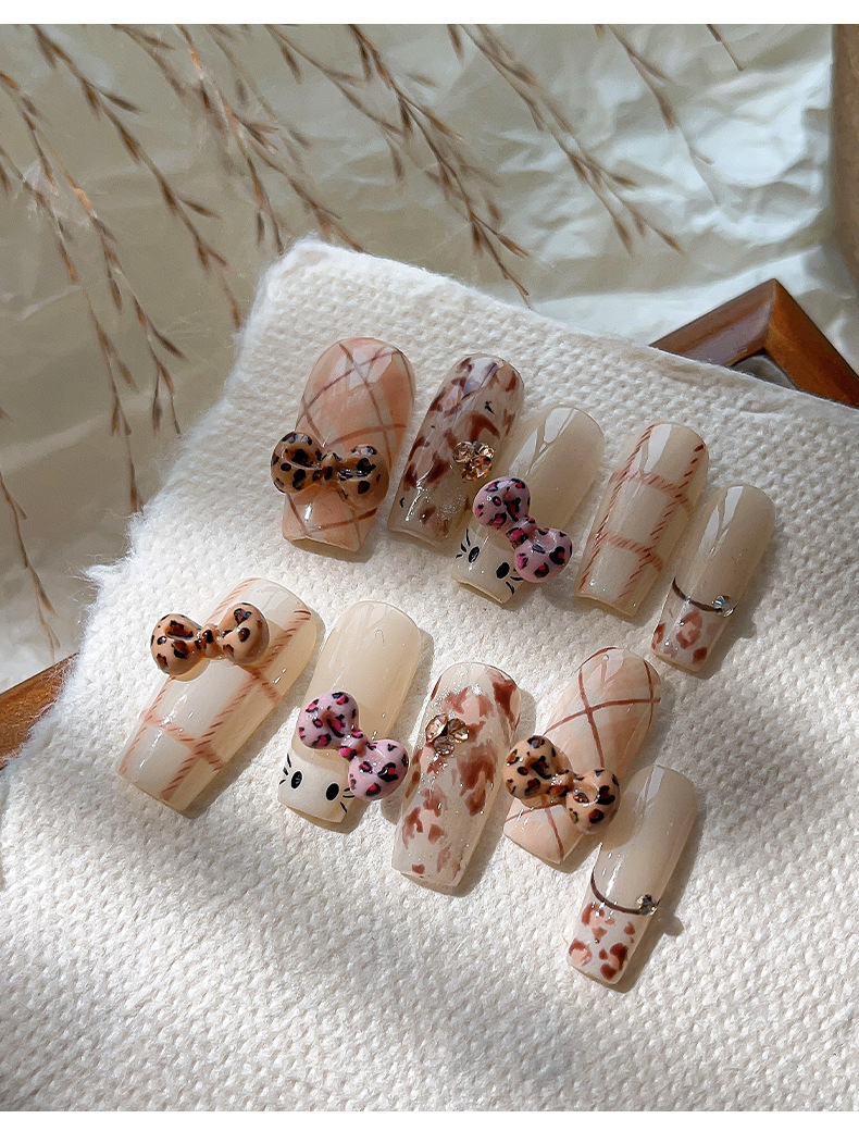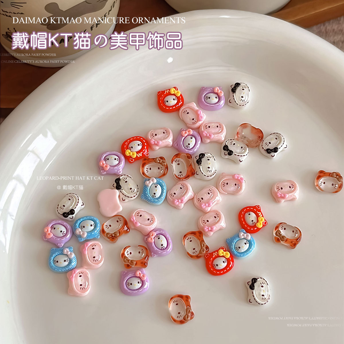 卡通兜帽KT猫美甲饰品可爱立体混装蝴蝶结猫咪树脂穿戴甲配件批发