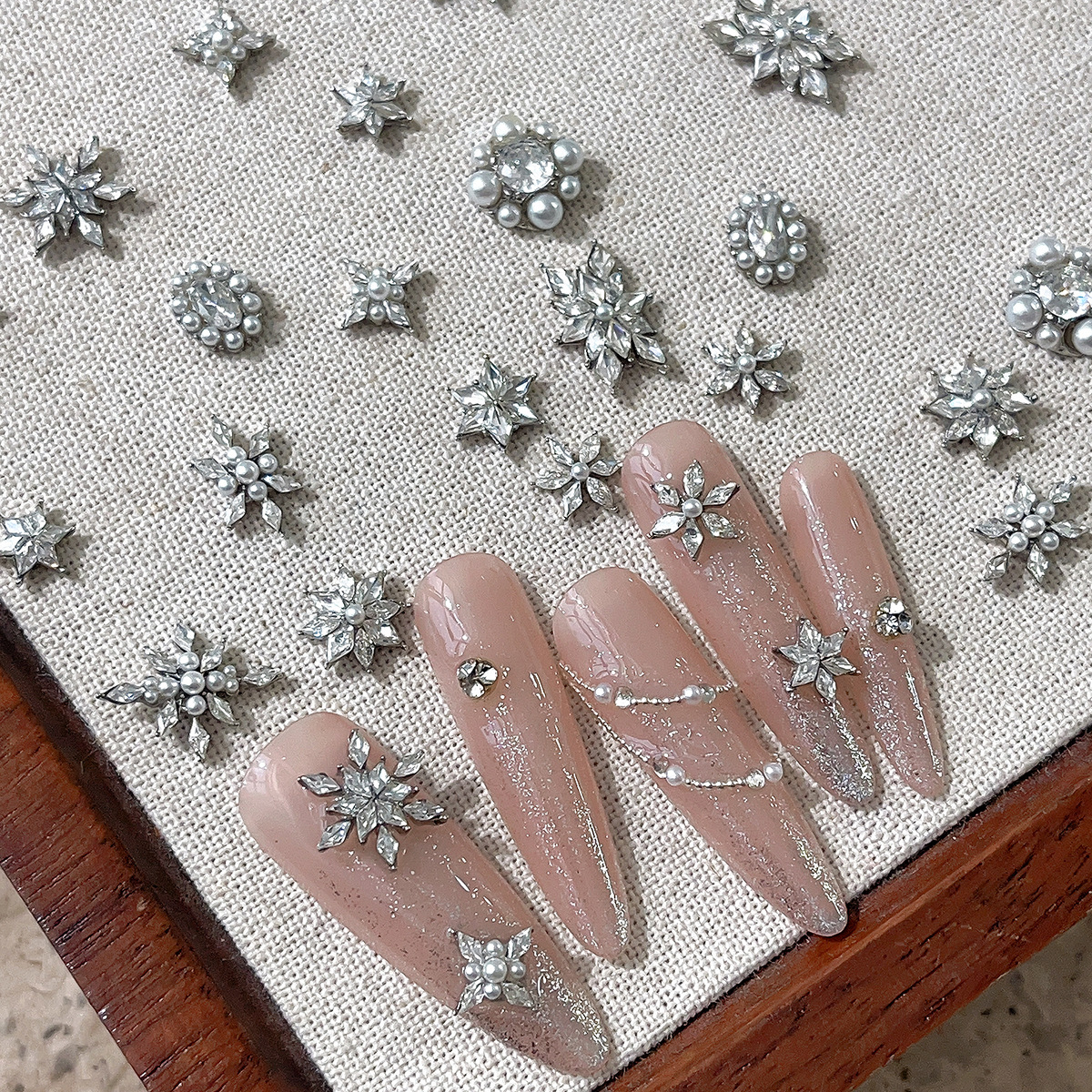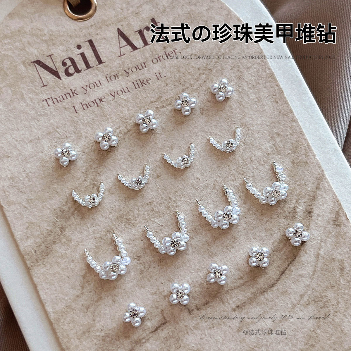 フレンチパールネイルアートジュエリー 2025 新しい立体ダイヤモンドフラワー小さな三日月パイルダイヤモンドネイルダイヤモンド装飾卸売