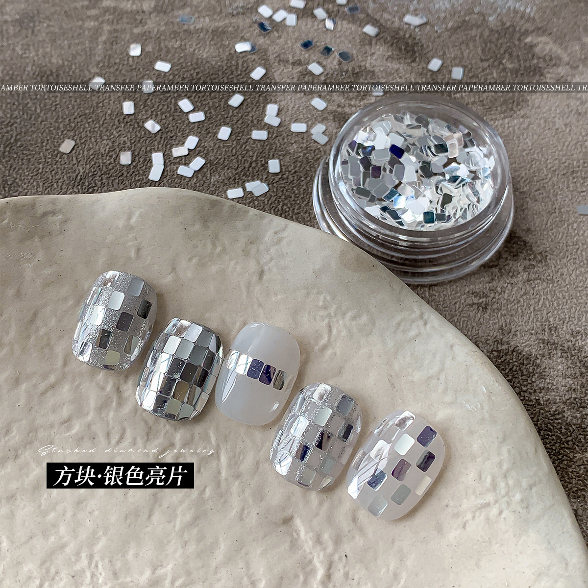 新型の四角の銀色のスパンコールのネイルアクセサリーの箱の中で精巧で爆発的なミニの百合は甲の装飾品の卸売りを身につけます。