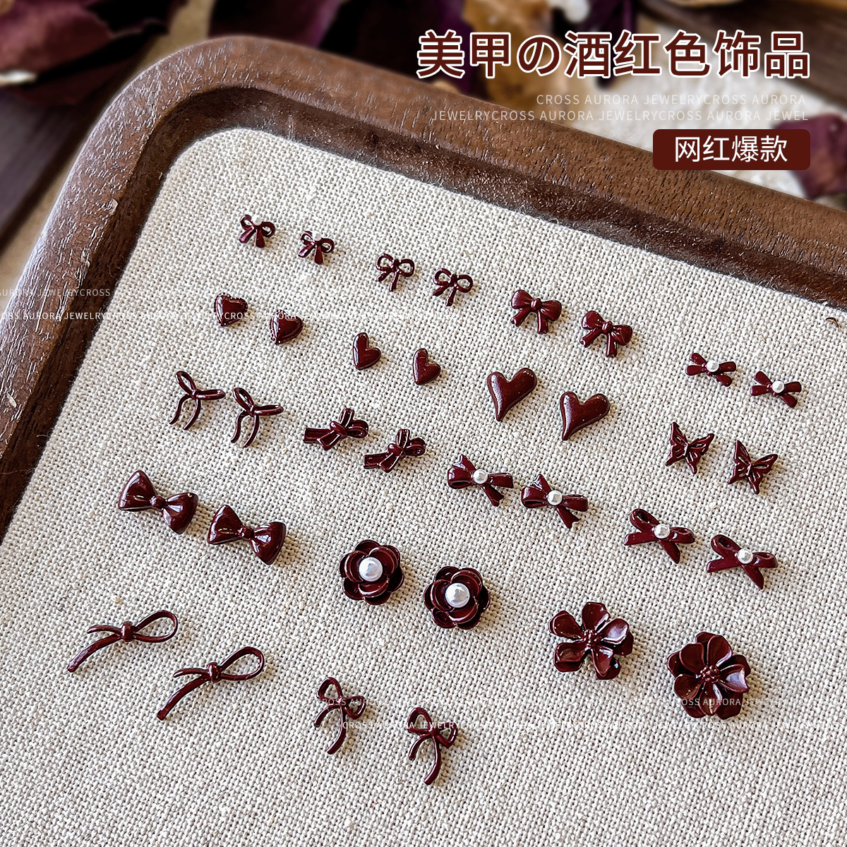ネットの赤いネイルアクセサリーの真珠の蝶の愛の花の美しい組み合わせの爪の装飾品の卸売り
