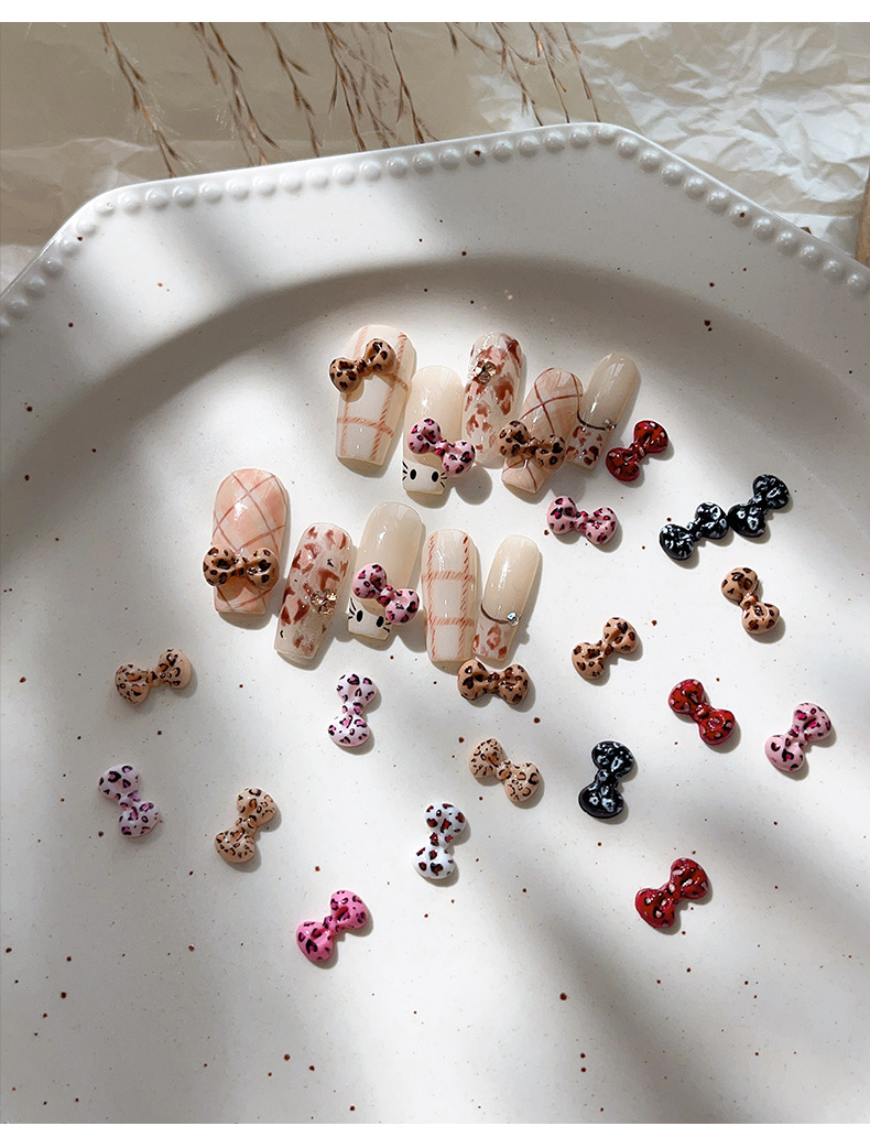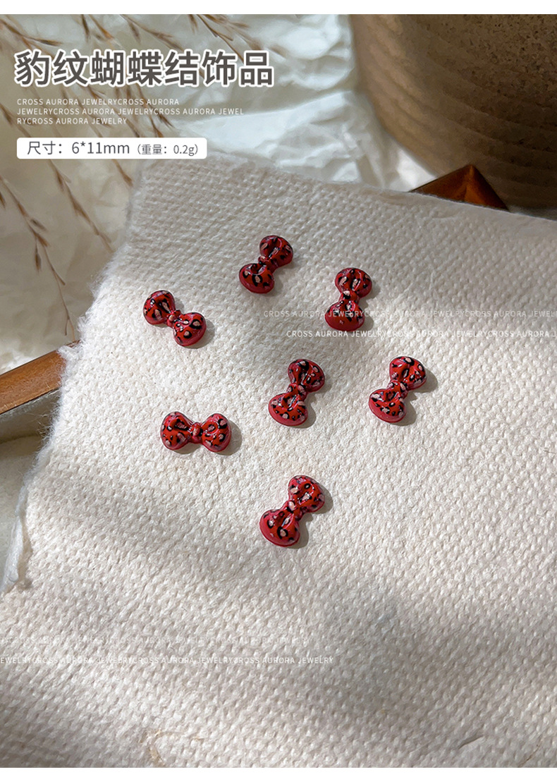 ネットの赤い爆発物のヒョウの紋様の蝶結びのネイルアクセサリーのカラーは精巧で、足の平の金は甲の装飾品の卸売りを身につけます。