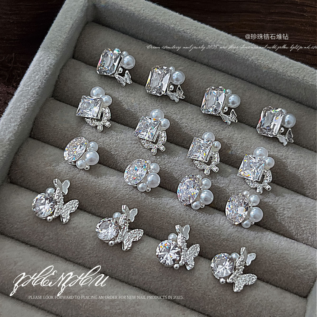 高品質のジルコンの真珠のドリルのネイルアクセサリーの爆発的な底の異形の蝶のドリルの立体の爪の装飾の卸売り