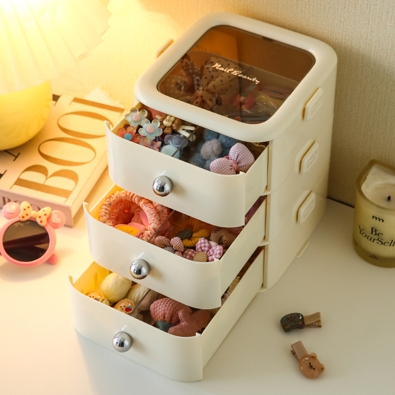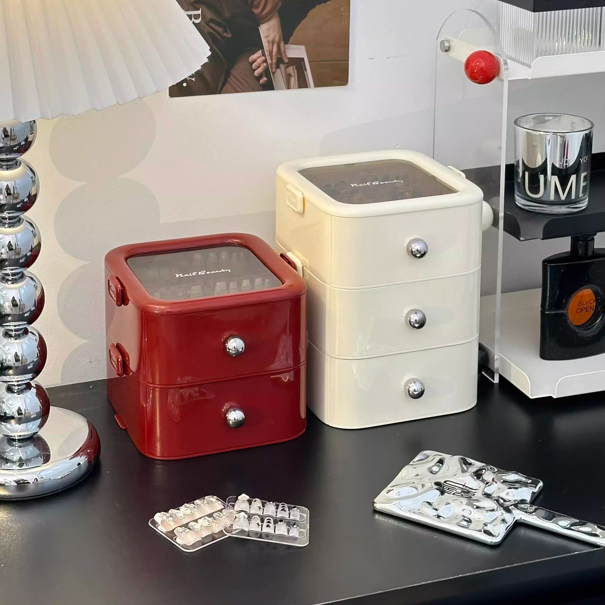多功能桌面收纳盒手工穿戴甲展示盒美甲首饰化妆品防尘抽屉整理盒