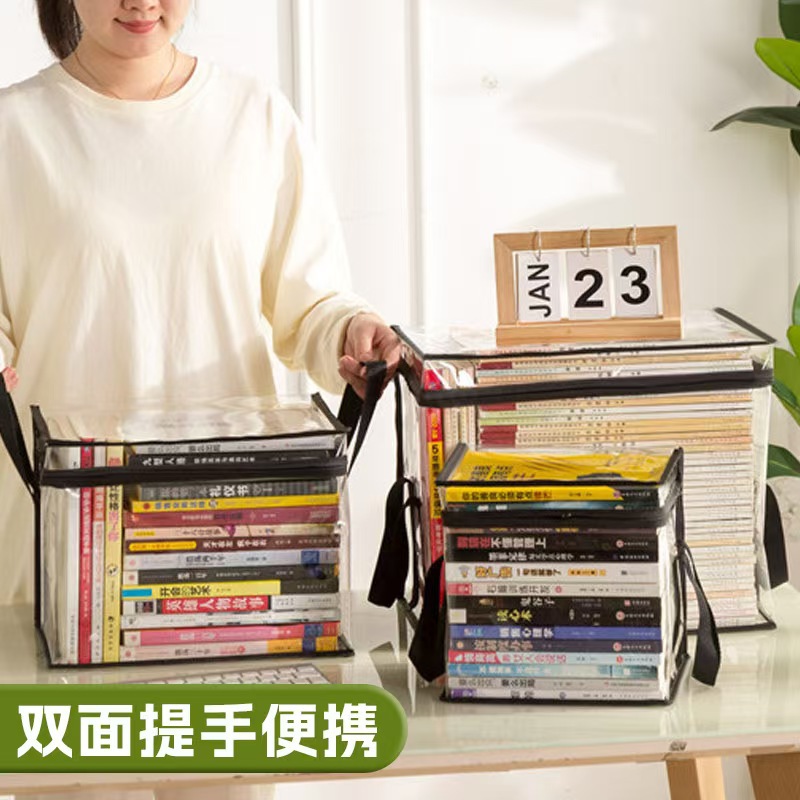 Amazon クロスボーダー本収納ボックス透明防塵本オーガナイザー手持ちおもちゃ本収納袋蓋付き