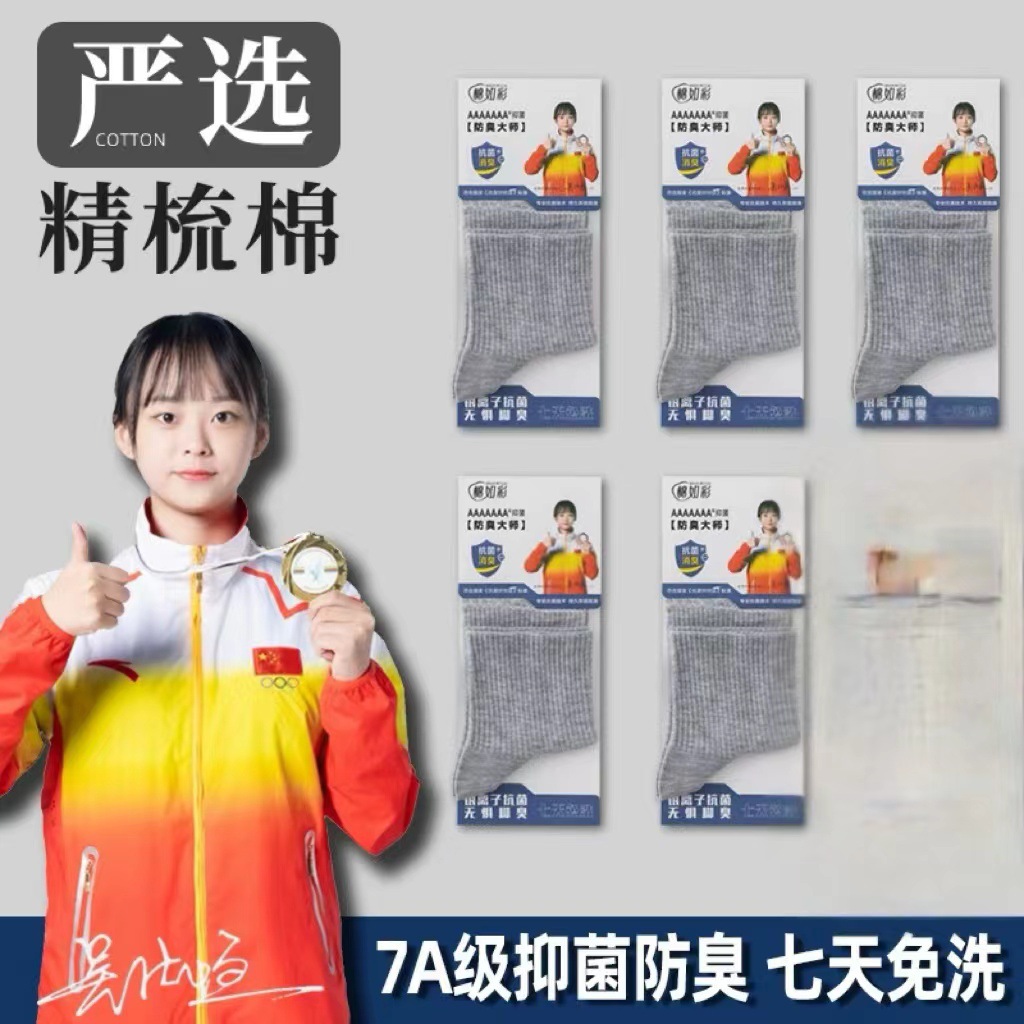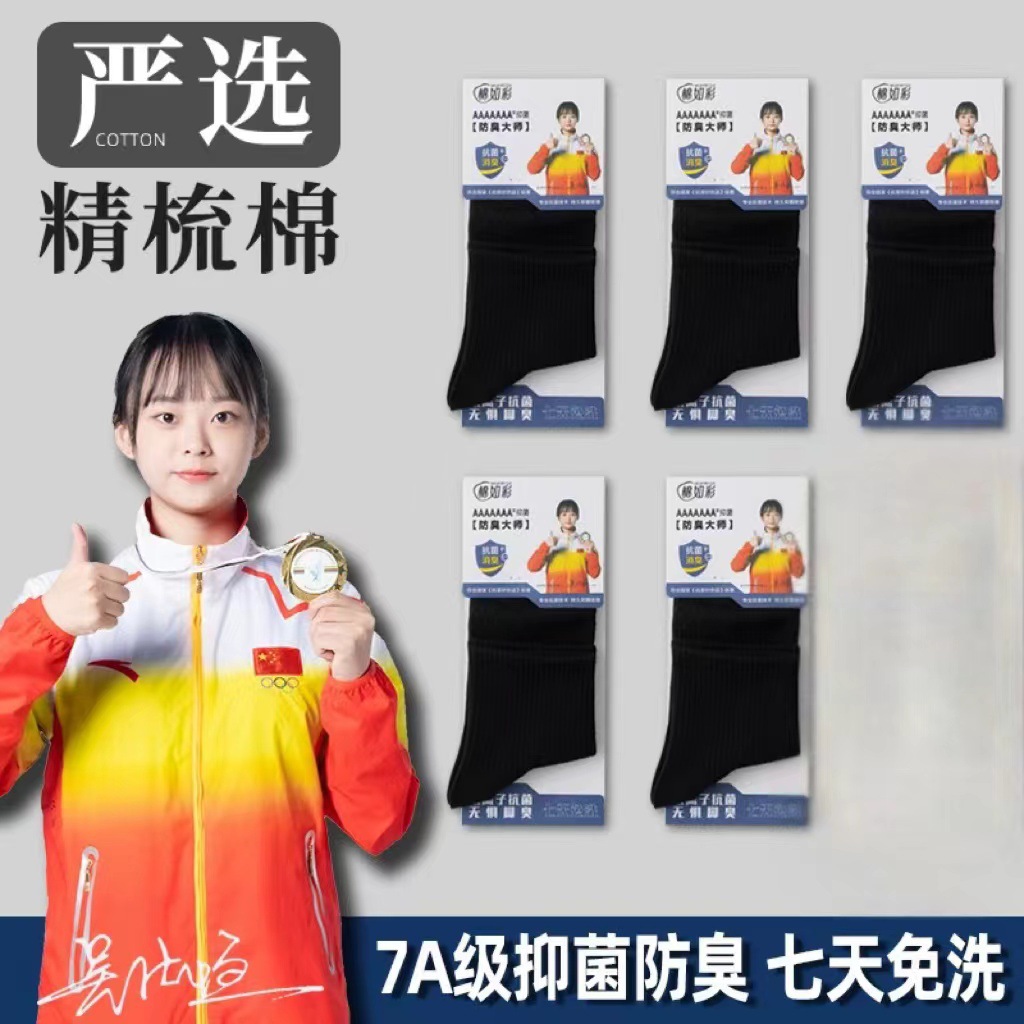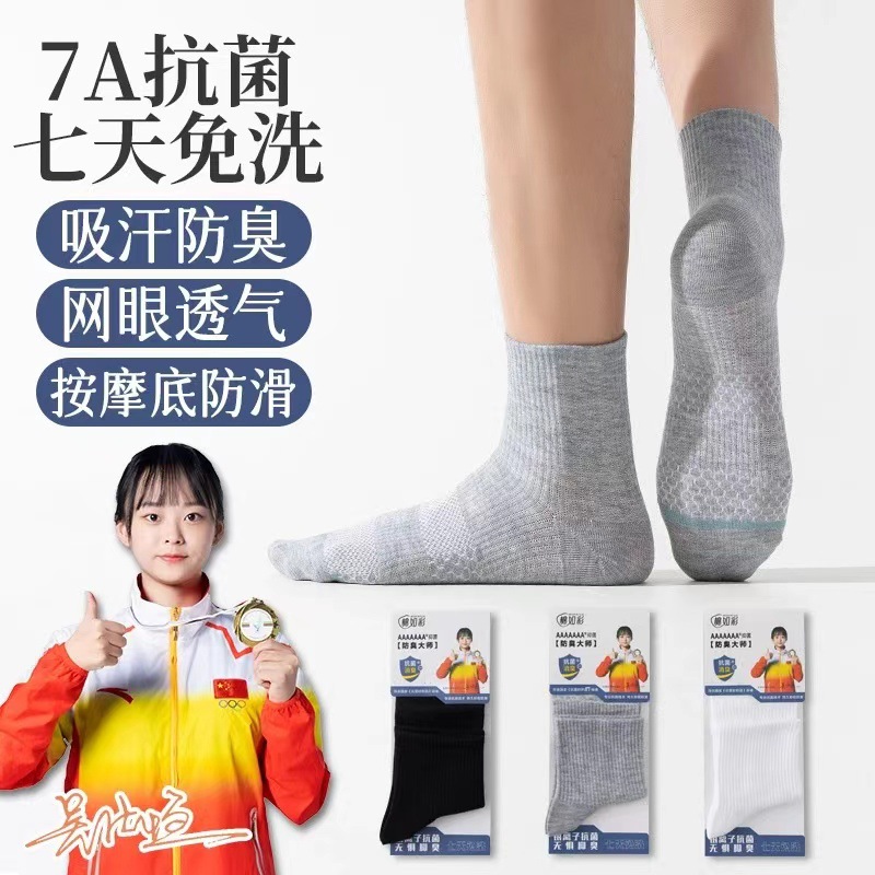 独立包装メンズ秋冬靴下7a抗菌防臭靴下百綿純色ネット版中筒艾草香薫綿靴下