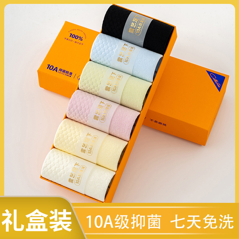 10A袜纯色子女中袜防臭袜子香薰盒袜商务双透气礼盒装礼盒代发