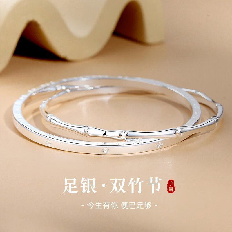 銀メッキの光沢のある竹節のブレスレットの女性の若いタイプの節の高い竹の新聞の平安の中実の手環の新年の贈り物は彼女に送ります。