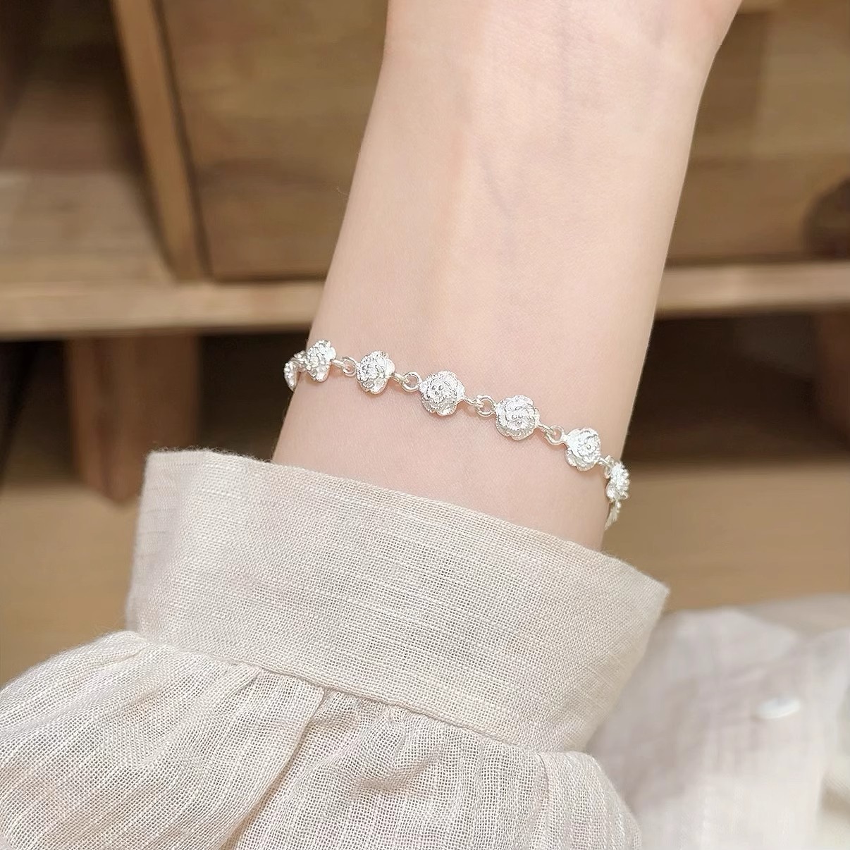 新中国式レトロ中実バラの花と銀のブレスレット2025新型は彼女にプレゼントします。