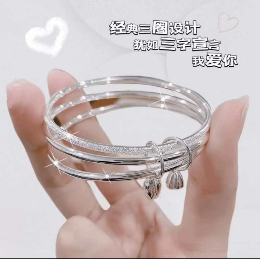 振音生放送銀メッキ竹節竹報平安ブレスレット中実は学生のブレスレットを押して彼女にプレゼントします。