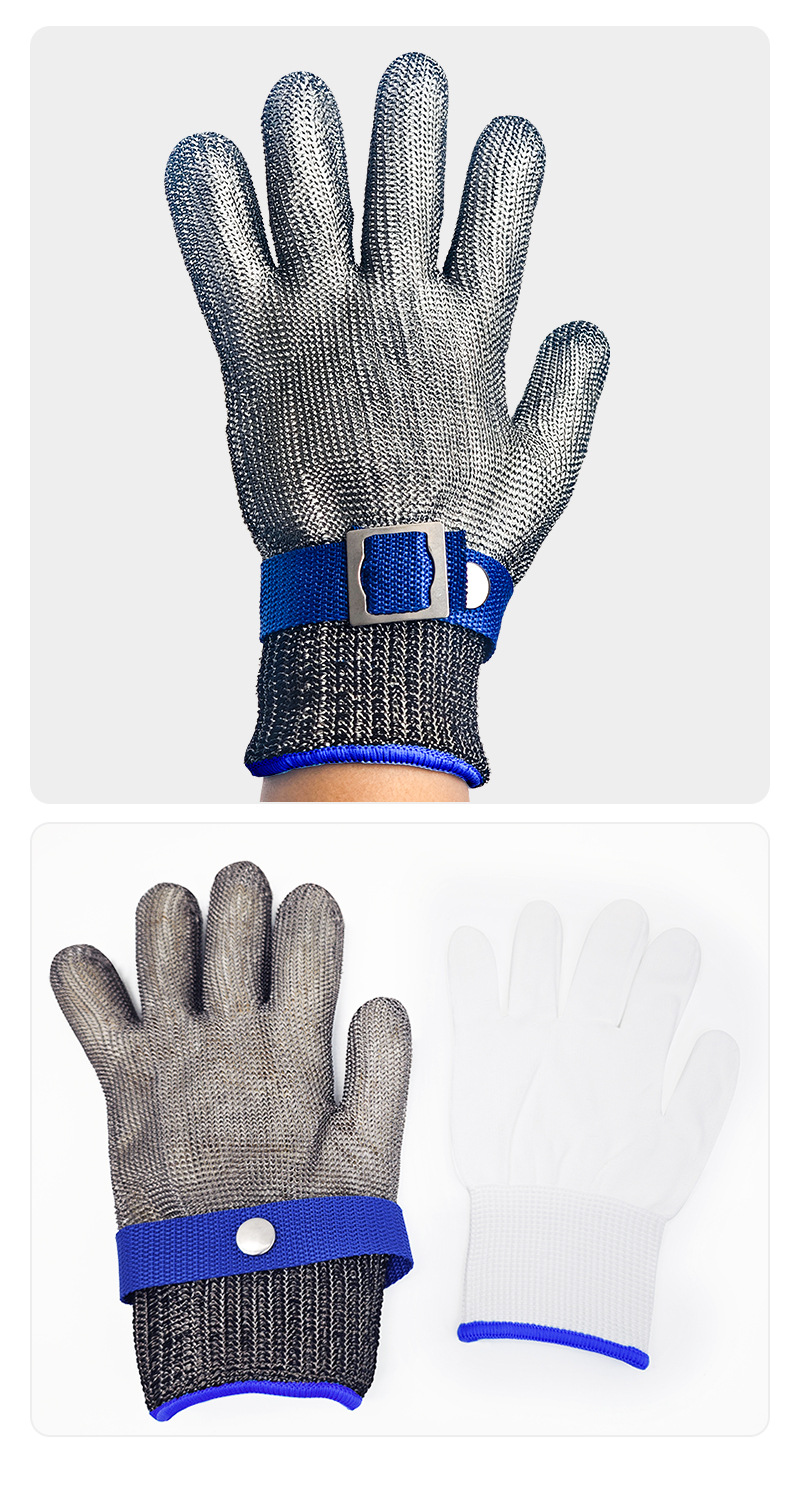 キッチンでの魚の処理用、耐切創グローブ、レベル5、五本指、鋼線入り、金属バックル付き鋼線グローブ