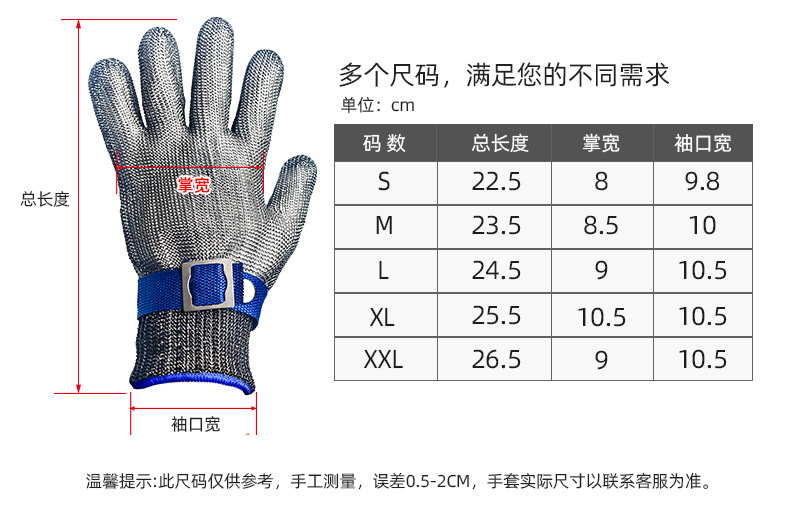 ワイヤー手袋裁断屠殺チェーンソー作業労働保護手部保護ステンレス金属手袋切断防止
