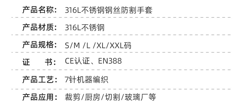 316鋼線耐切創手袋、屠殺・魚殺し用A9レベル耐切創・耐傷手袋、手の保護労働保護手袋