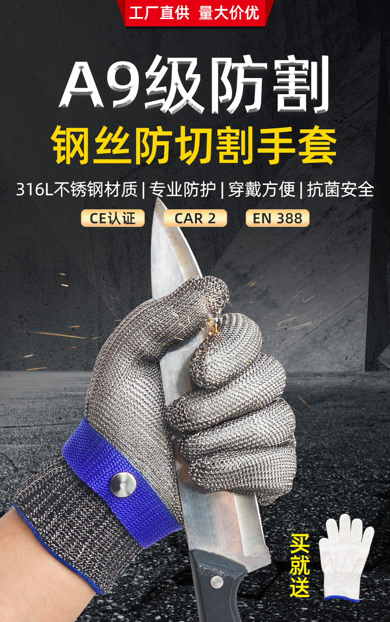 と殺殺魚316ステンレス金属鉄手袋美標a9級純鋼線防切断手袋卸売り