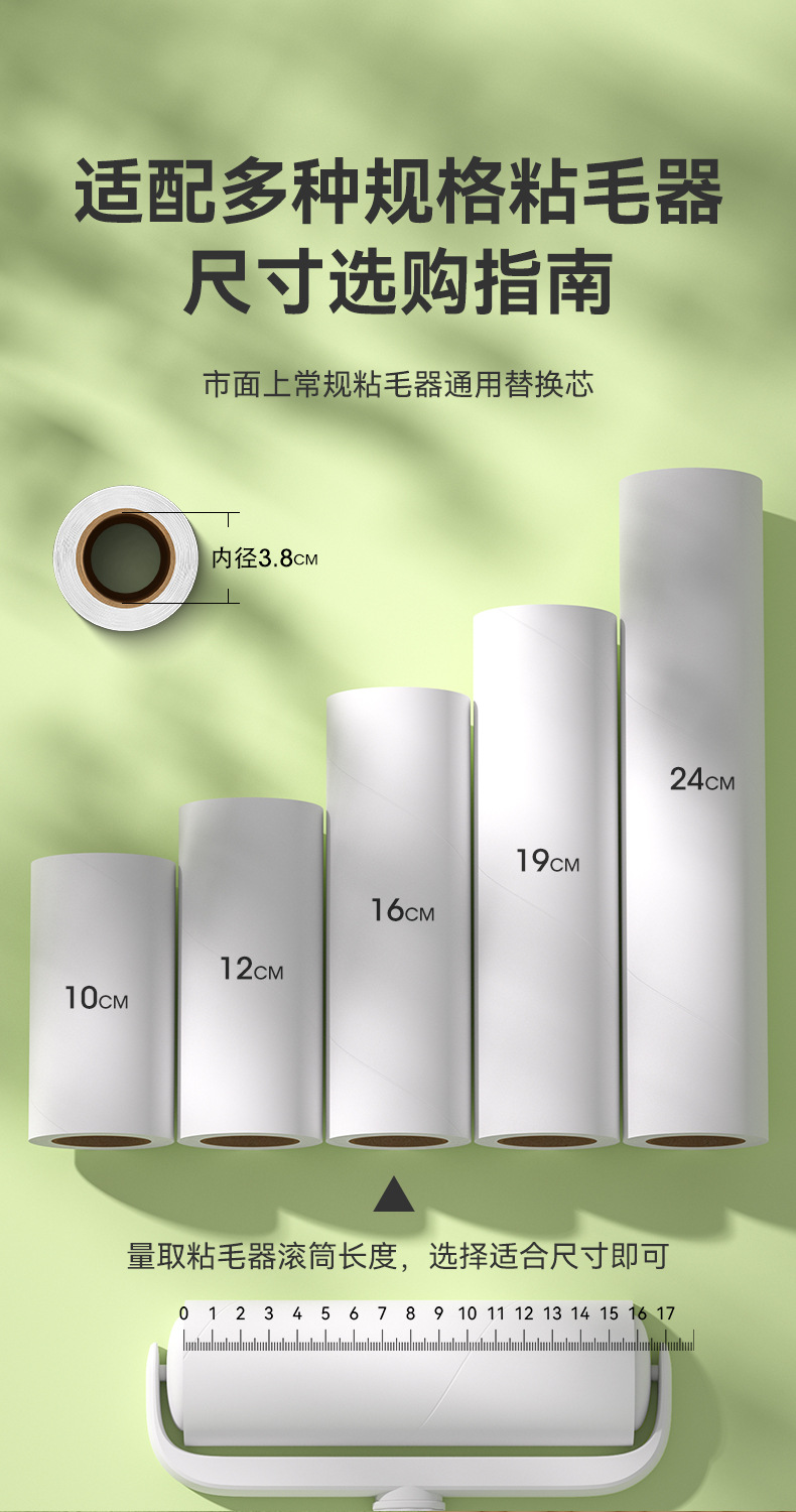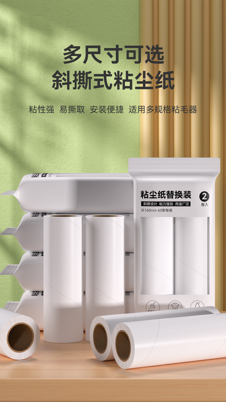 通用滚筒粘毛器粘尘纸芯滚刷宠物吸毛可撕式斜撕除尘衣物替换纸卷
