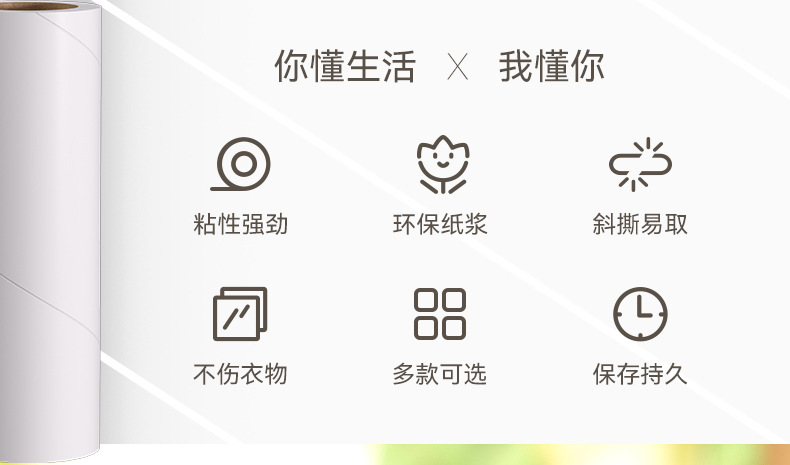 粘毛卷纸可撕式替换芯黏毛除尘纸强力滚筒粘毛器沾毛纸粘宠物毛发
